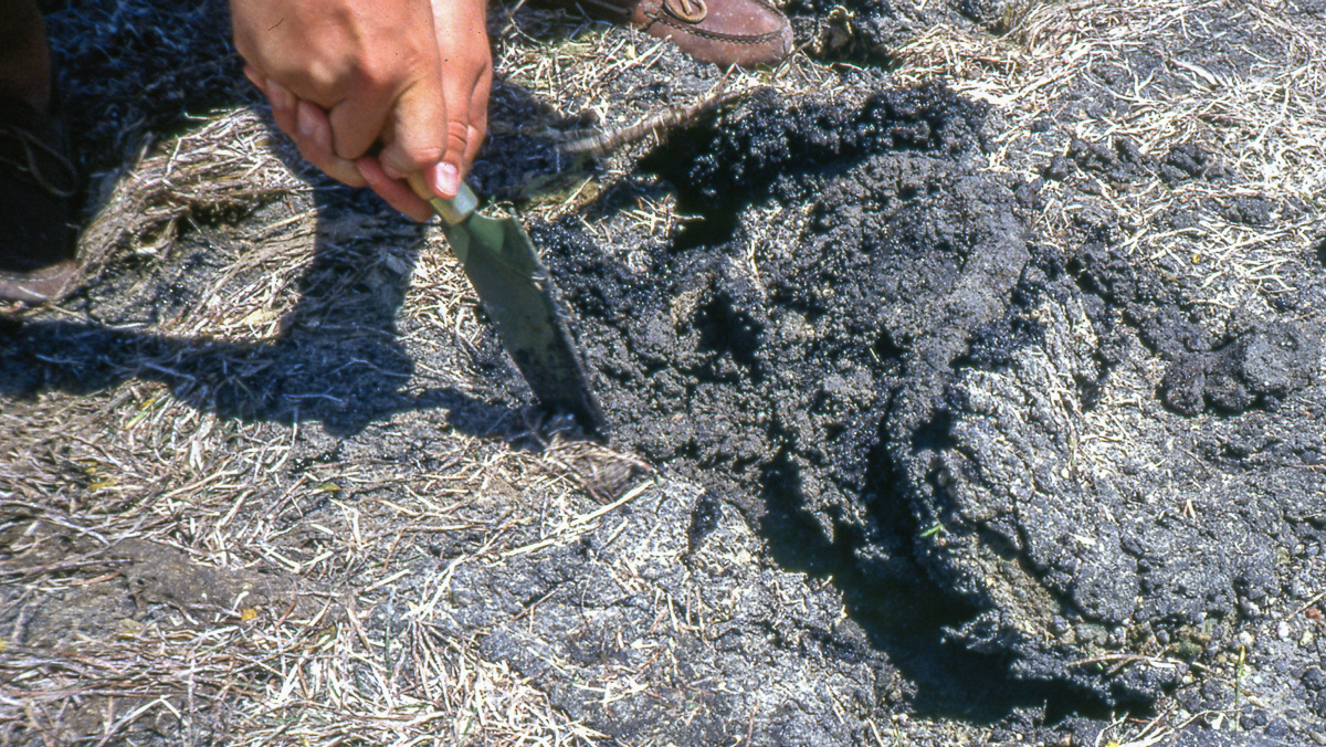 However, evidence of previous oil spills was clear with deep tar on the beach.