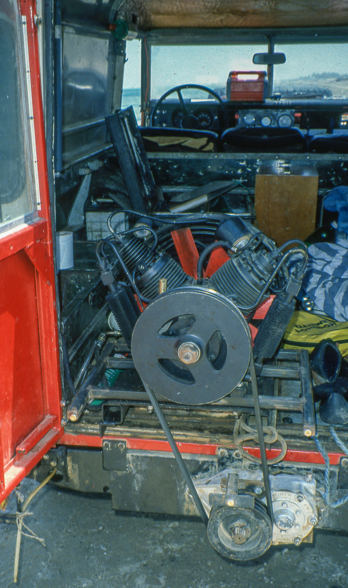 The key enabler of the whole expedition was Bertha the Land Rover. Over many months and with much assistance from sponsors, Adrian had built this from scratch. It included an air compressor, powered by the Land Rover’s engine, and worked extremely well for the whole trip. We were also lent Bertha the Suburban by an in-country sponsor. Bertha constantly gave us problems, at times burning more oil than fuel, but Adrian kept her alive.