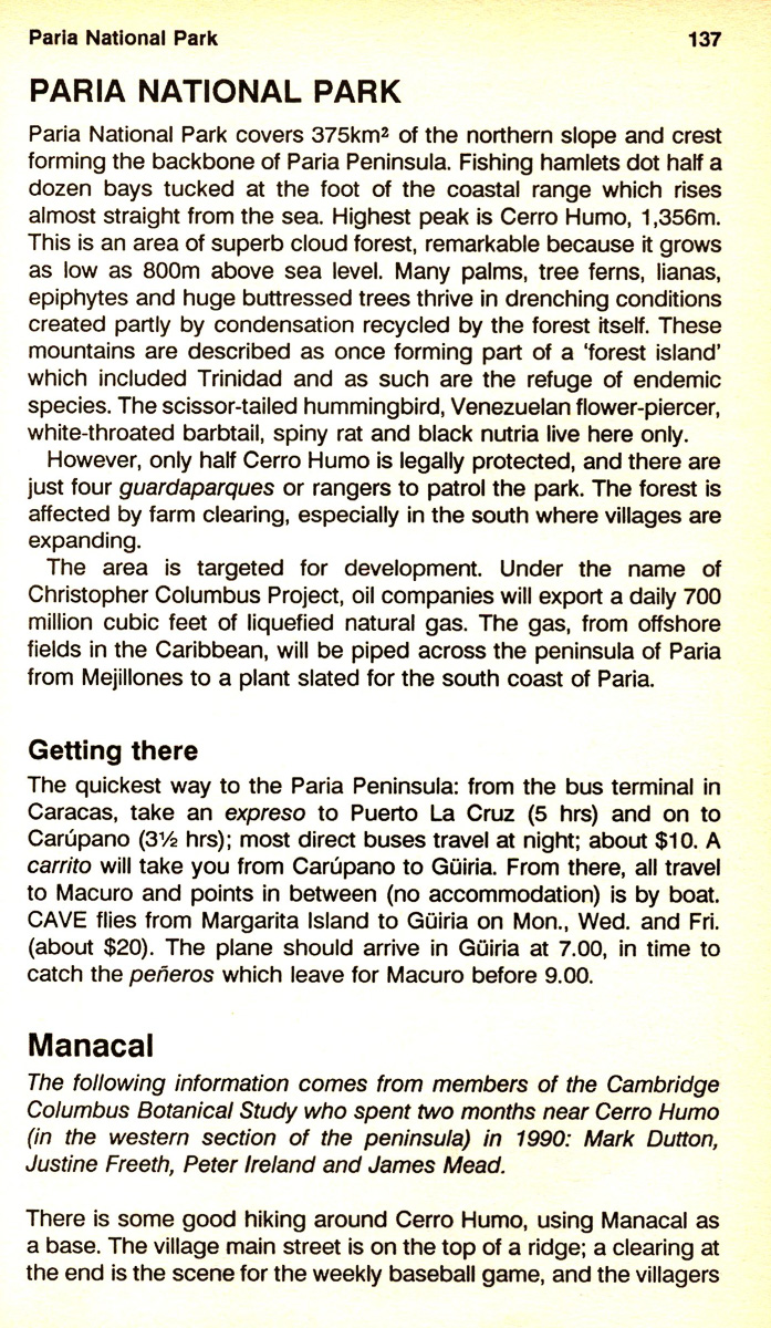 P.S. James shared with me a typed-up copy of my original notes about the Paria Peninsula which I have attached.