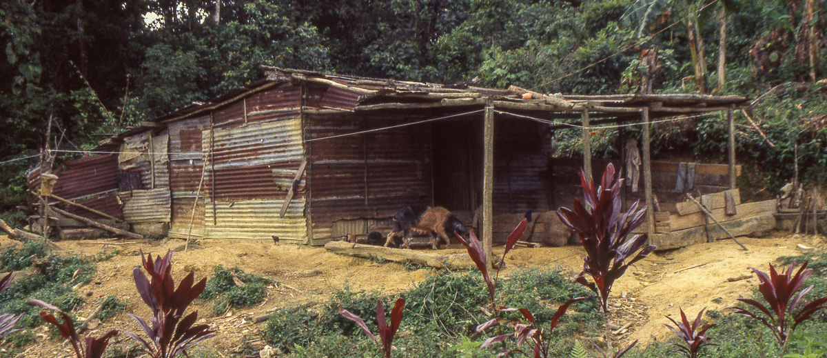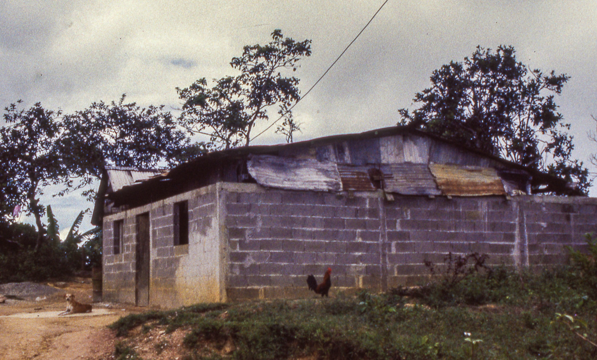 The local houses barely kept out the weather, built with bricks, corrugated iron, and wooden poles. No glass.