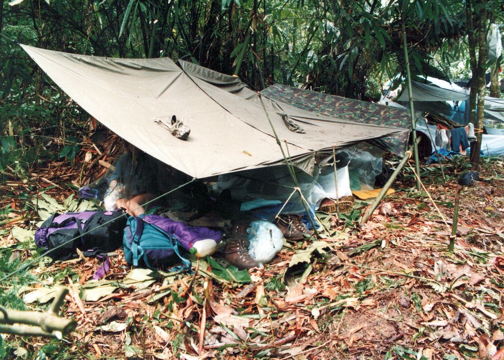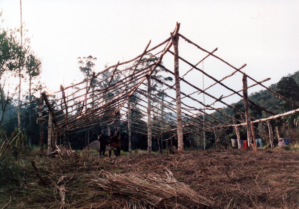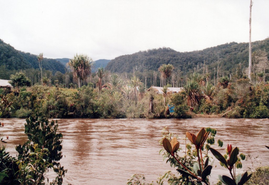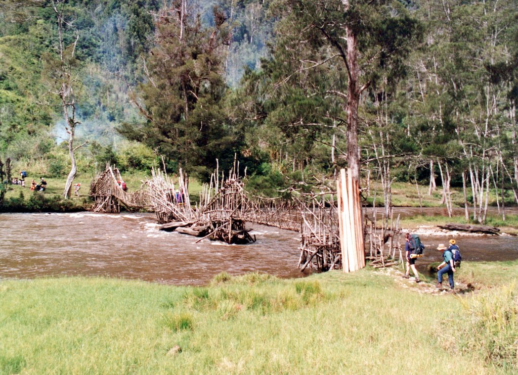 In the interior, we set up a base camp. We constructed a main shelter and latrines, working with Indonesians and the local indigenous people. We had time to explore the area which was remote, unmapped, and wild with rickety bridges over the rivers. I think this was in the Baliem Valley.