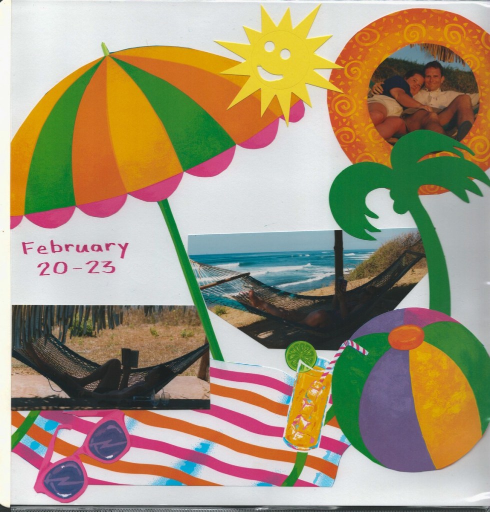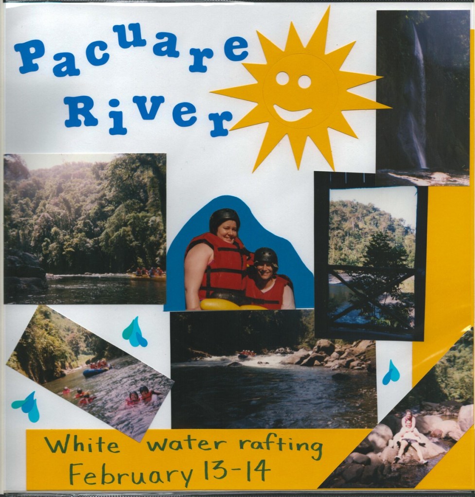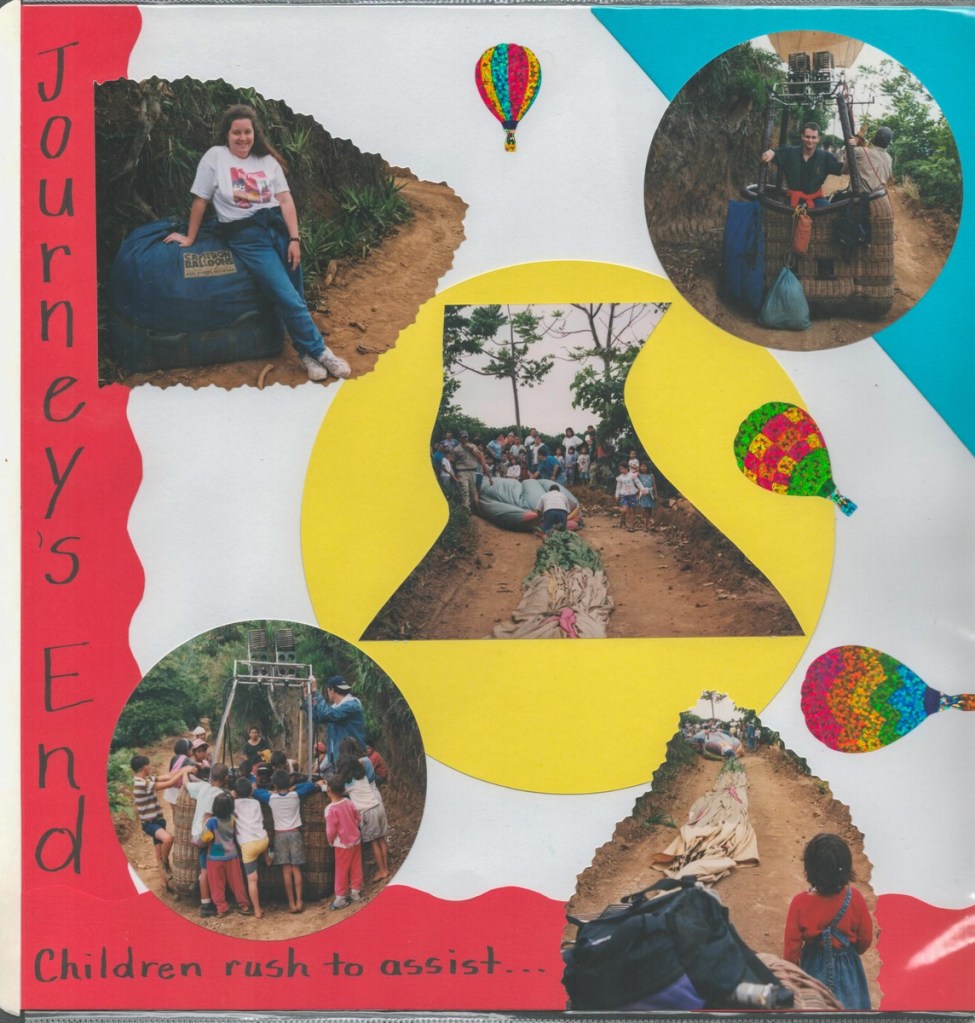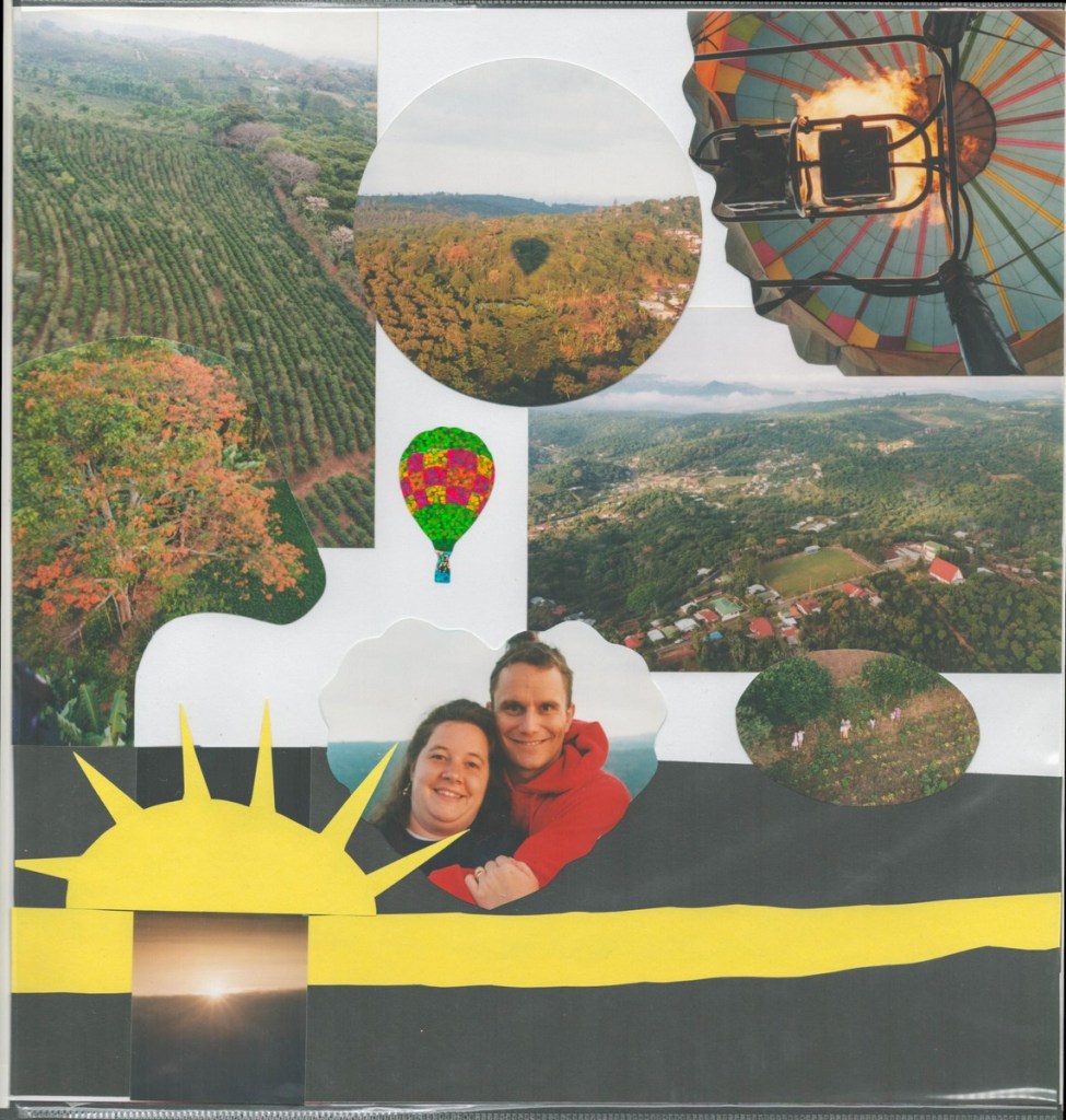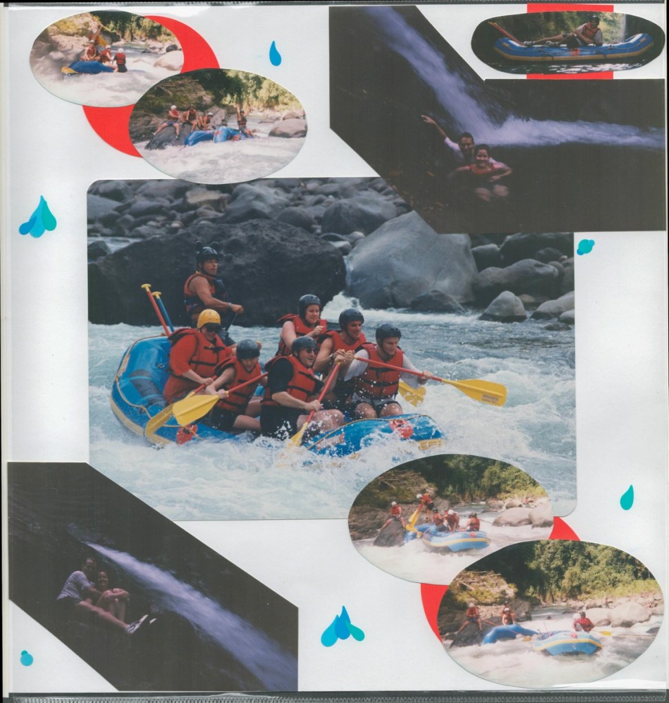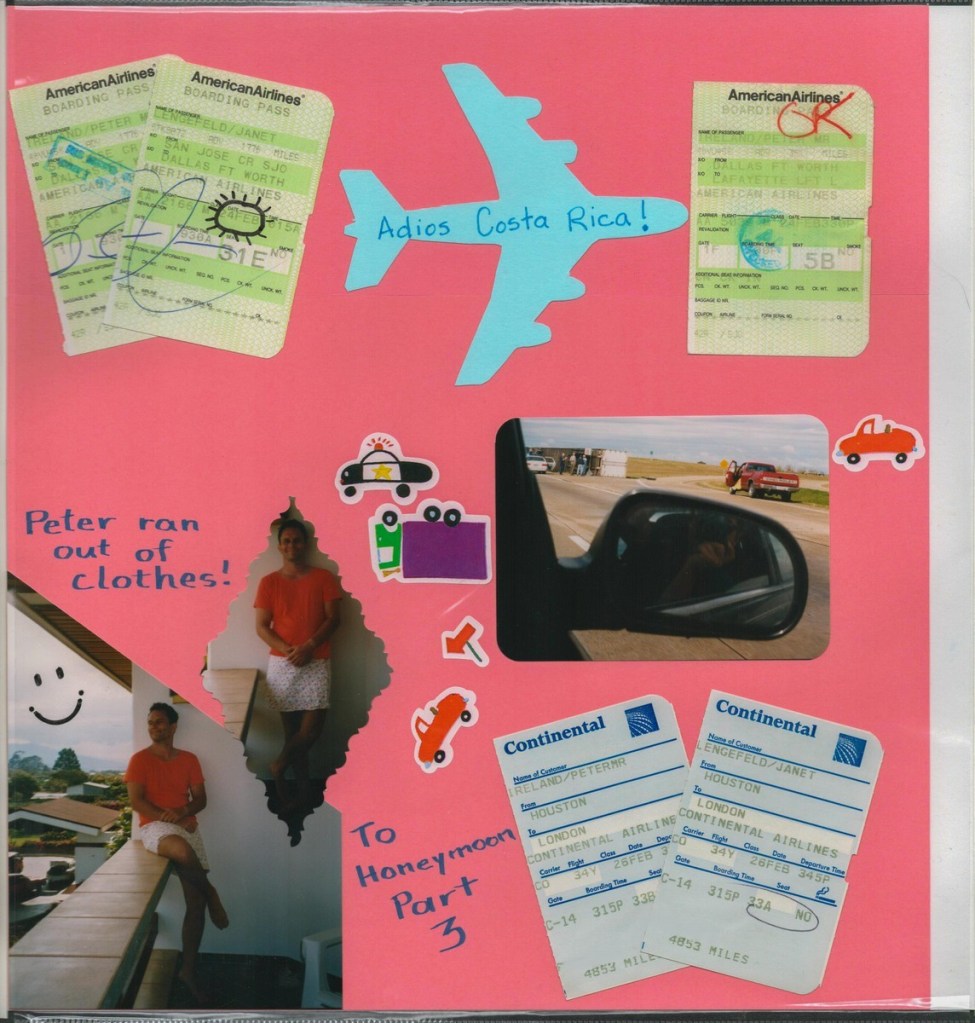 The highlight of our honeymoon was a Costa Rican adventure. We whitewater rafted, rode in a hot air balloon, visited a volcano, toured a cloud forest canopy, and chilled on a beach. Amazingly, Janet arranged all of this using a rudimentary WebTV set (using dial-up internet and a TV as a screen)! Janet produced a fine scrapbook of the trip, scans of which I share below.