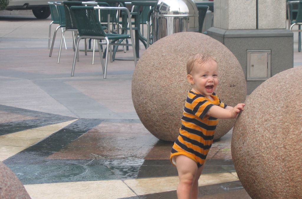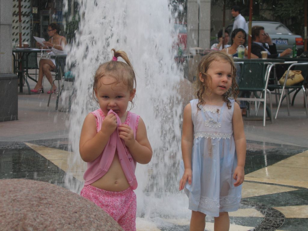 The weather has been quite variable – perhaps alternating between London and Houston weather – and a mix between the two! We’ve had quite a lot of rain in the last week – not tremendous downpours, but steady, which makes getting around with kids on foot more difficult. Some other days have been very hot, humid and foggy – though we did expect worse. Many have described how bad the pollution in Beijing is – now I’m not saying these days are particularly pleasant, but they could have been a lot worse, and I did not find being outside in Houston in August any more pleasant! And then, we’ve had a couple of lovely days. This morning was cool and clear. On Friday evening, I met Janet and the kids at a fountain by the Holiday Inn which is very close, and the kids played in the water with Sydney (a friend of Bailey’s).