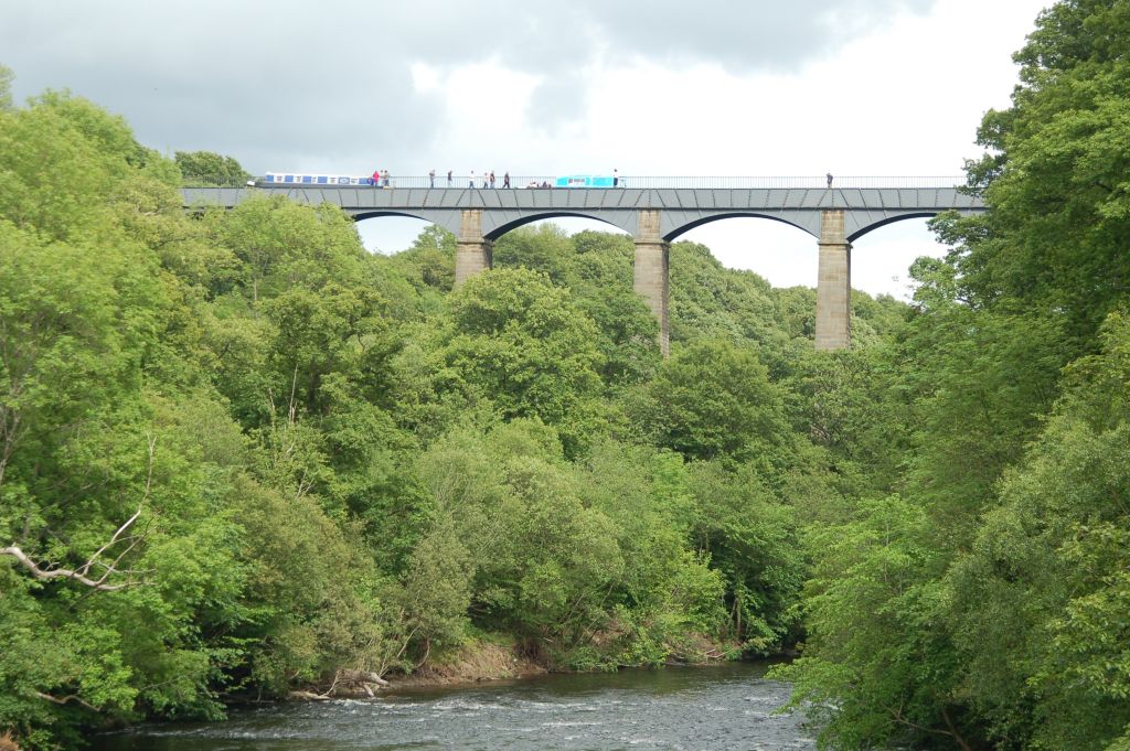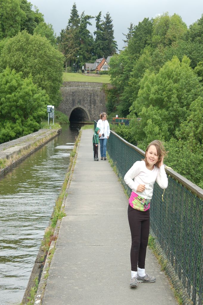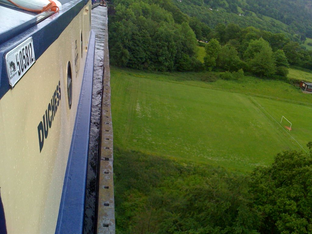 On the first day of the trip, we passed over the Chirk aqueduct, where the canal is on a bridge, next to a viaduct, where the railway passes over a bridge. It was a weird feeling taking a boat over a bridge. There was a good path along each side of the water on the aqueduct, so the boat driver doesn’t have to look down. The bridge crossed over from England into Wales.