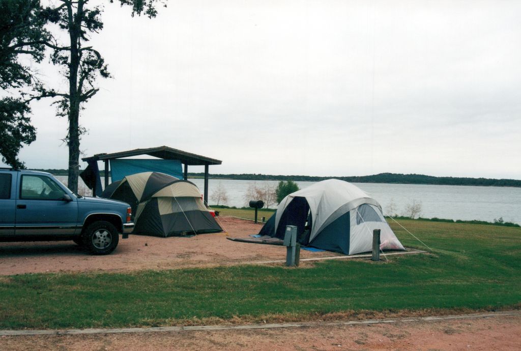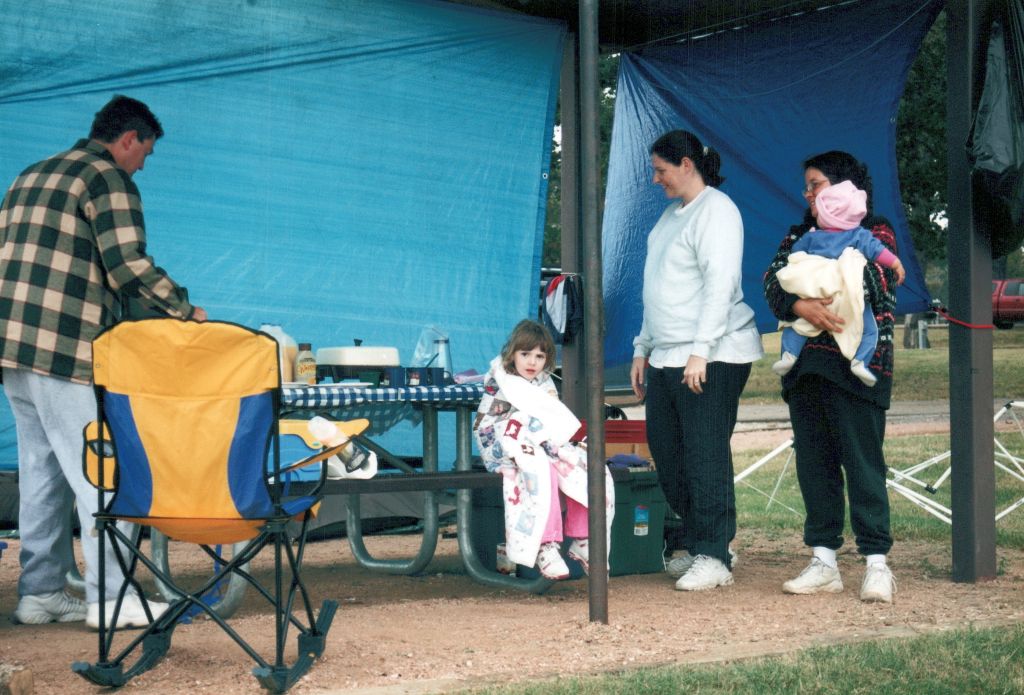 There was a pause in our camping trips as we did some other fun things, and then Bailey was born in March 2003. We met the Lamberts “half way” at Lake Somerville State Park, enjoying our first camping trip with kids. While not captured in any photos, a storm on the first night flooded our tent and we sought shelter in the local Dairy Queen until it lost its power. Otherwise, it was a cold and windy weekend, but still lots of fun.