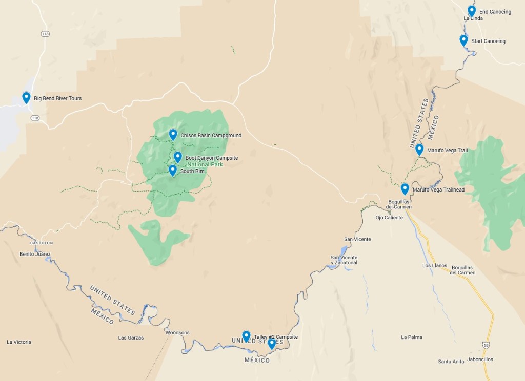 Now for my third visit to West Texas. After an awe-inspiring summitting of Guadalupe Peak, Samuel and I were ready for our next challenge. Spring Break 2016 gave us the opportunity to head back to the desert while the girls did a trip to New York. Each of us were very happy with our trips! Recognizing that Samuel was only eleven and my wilderness experience remained low, I didn’t want to be too ambitious. Also, as I still had not embraced filtering water and the National Park website stressed the uncertainty of the spring water in the Chisos Mountains (more on that in later blogs when we relied on it), our backcountry hiking was limited to how many days of water we could carry, which translated into how much I could carry as Samuel was still small. So, we planned for three nights in the Chisos (one in the basin and two in the mountains), one-night remote car-camping, an overnight hike to the river, and a two-day one-night canoeing trip with an outfitter.