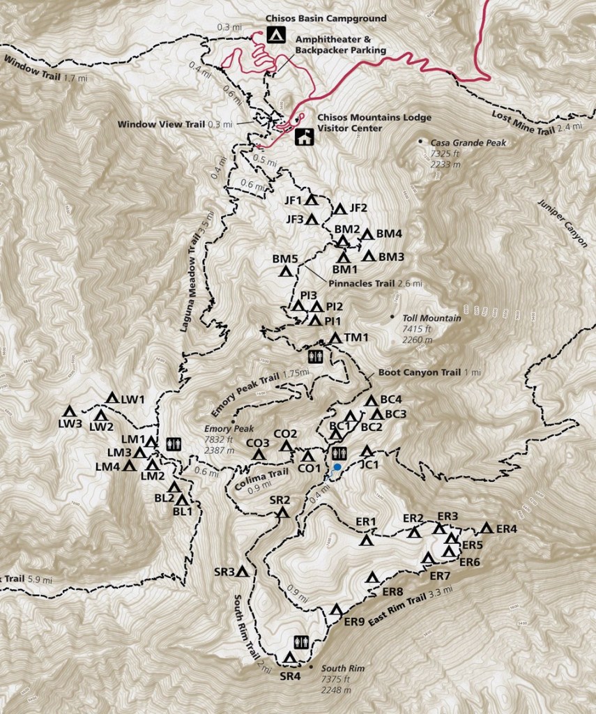 Our first night, after the long drive from Houston, was camping in the Chisos Basin. It is a functional car-camping campground that fills up and needs early reservations, especially during busy times like Spring Break. Most importantly, it is close to the mountains. Its other redeeming feature is its proximity to the Chisos Mountains Lodge, which has a restaurant, and the permit station at the Chisos Basin Visitor Center.