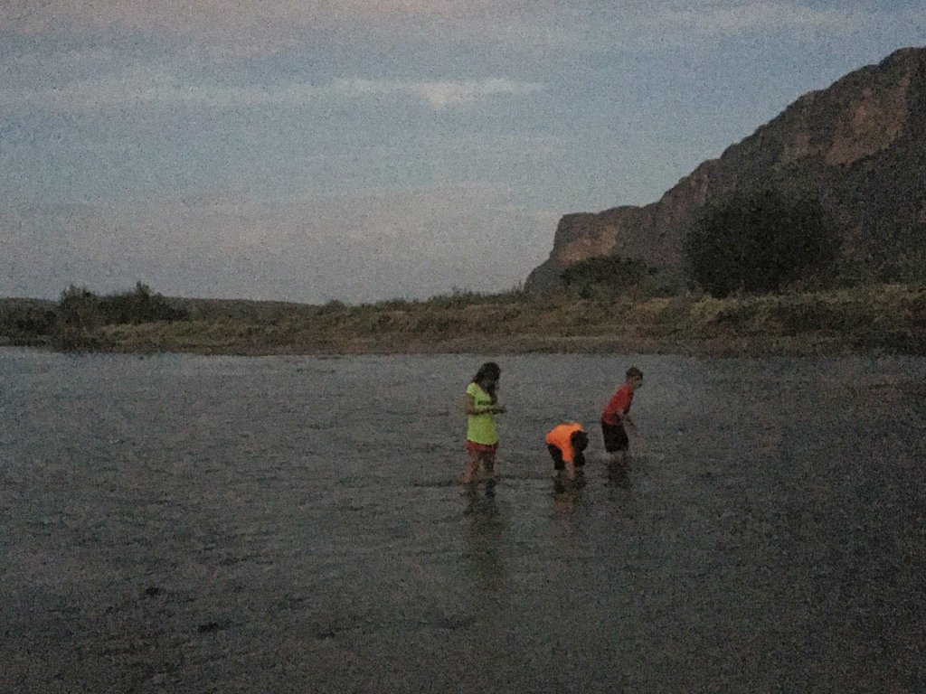And that was the canoeing trip and the end of our planned activities. After heading back to Terlingua with the boats, we went to check back into our hotel. Without knowing they were in Big Bend, we bumped into the family who lived next door to us, who were hunting fossils! We quickly learned that there had been a mess up with their hotel reservation. As Samuel and I had both a room and a tent, and there was space in the campground attached to the hotel, they took our room. We also made the most of the time and headed back down to the Santa Elena Canyon. We quickly realized why we had not canoed here – the water was too shallow, but it was great for the kids to find skimming rocks. It also helped Samuel forget that he had lost his hat!