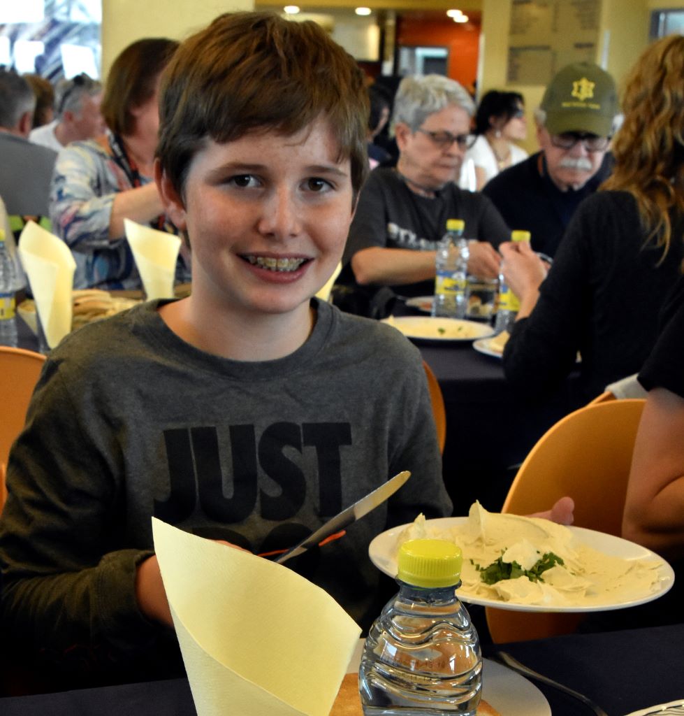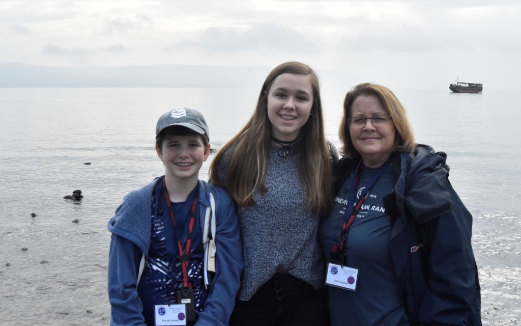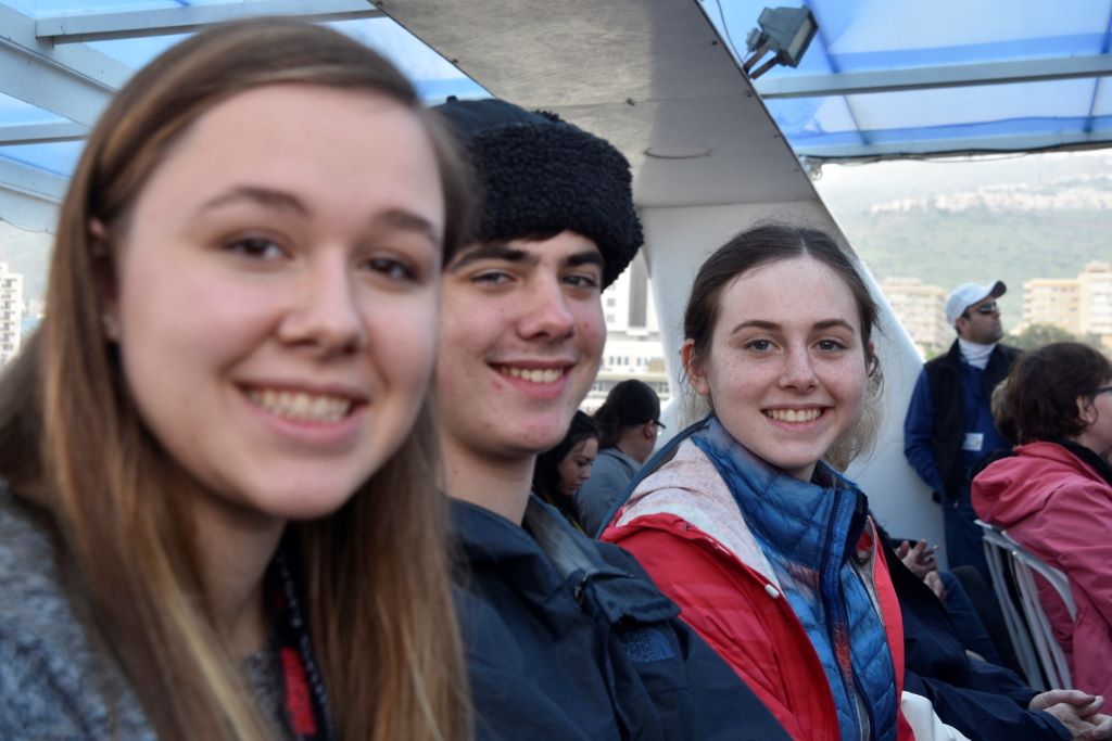 Day 3 Fifth Stop: Lunch and a boat trip on the Sea of Galilee. For lunch, we enjoyed fish freshly caught from the lake before taking a boat out on to the lake from Tiberias on a very still day. It was cool to see the shore and surrounding towns from the lake. The buses mingled and we spent some time with Jackson and Audrey who went to school with Bailey.
