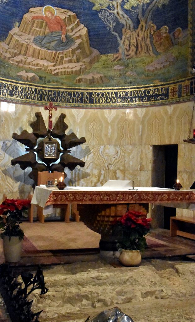 At the bottom of the hill we reached Gethsemane. We walked through an olive grove before entering a church that was built in 1924 over the rock where traditionally Jesus prayed immediately before his arrest. Gethsemane means “oil press,” linking the location to olive cultivation.