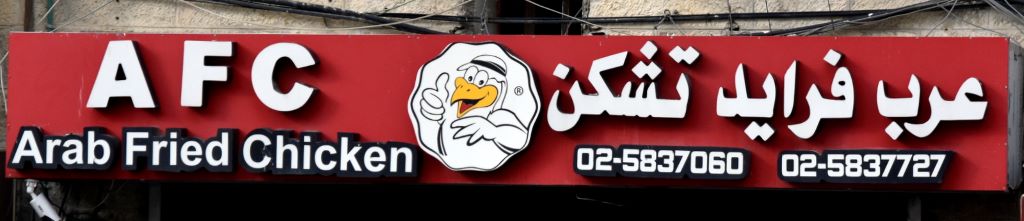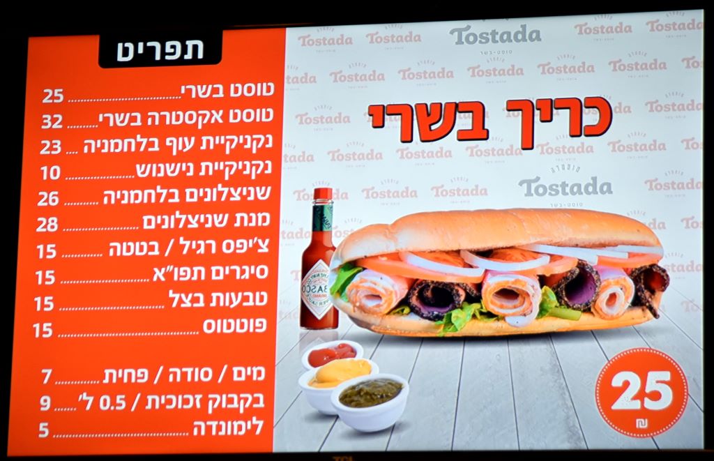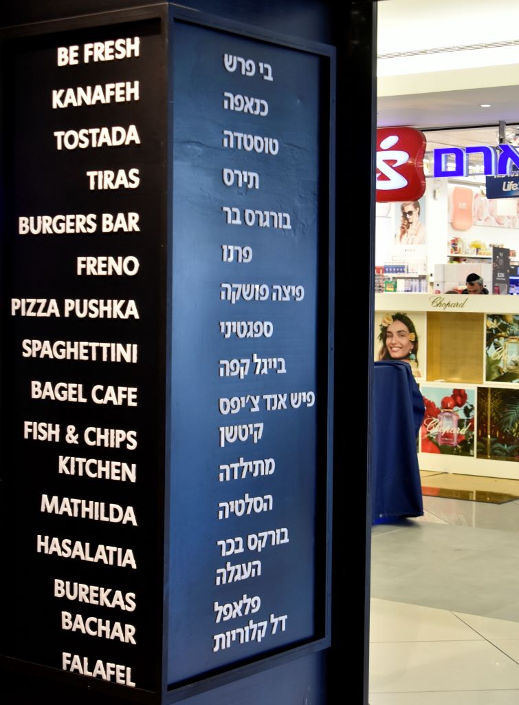Next up was lunch at a food court in the Hadar Shopping Mall. It was a fascinating mix of western, Israeli, and Arab cultures, and we were particularly amused by a mirror-image of a Tabasco bottle in a cafe’s photo! We all had tasty dishes though.