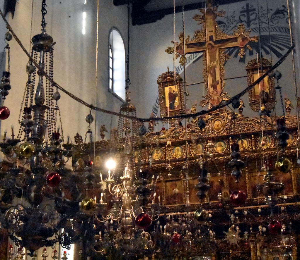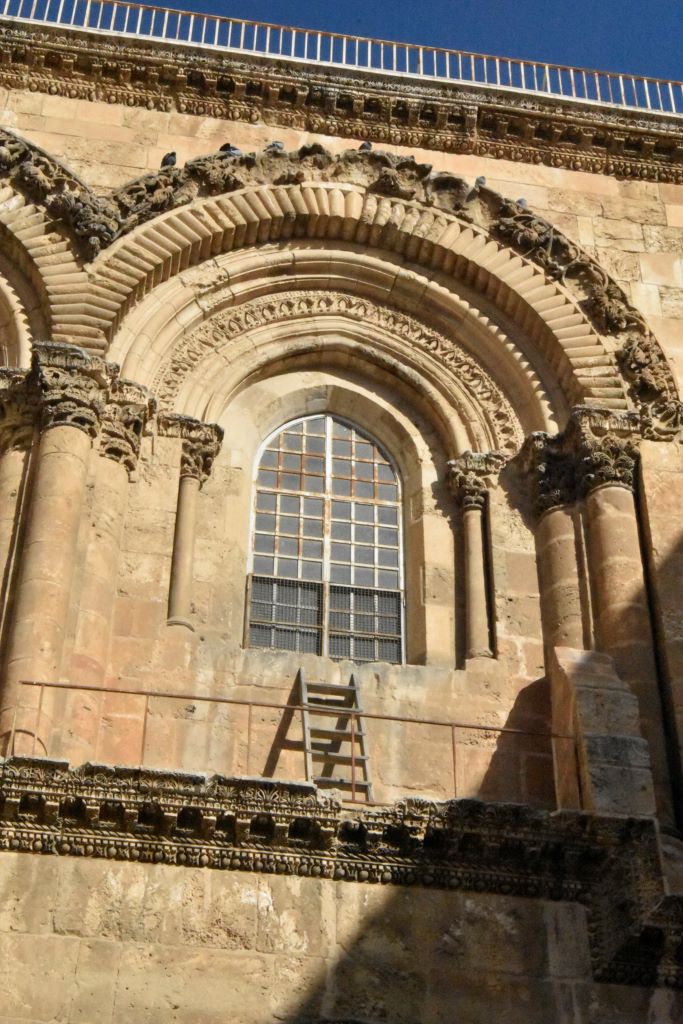 The original plan for the day did not include a trip to the Church of the Holy Sepulcher. The church claims to stand on the site of Jesus’s crucifixion and burial, but this is widely challenged. While it remains a popular site for pilgrims and is gaudily decorated in a similar way to the Church of the Nativity, it also symbolized division and “status quo” between different Christian groups. The fourth-century church is owned by six denominations (Roman Catholic, Greek Orthodox, Armenian Apostolic, Coptic, Syriac, and Ethiopian Orthodox), and an agreement dating back to 1757 maintains the “status quo” where all six have to agree to changes. Symbolic of this status quo is the “immovable ladder,” first mentioned in 1757.