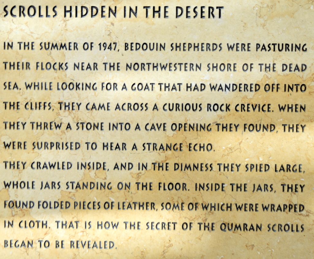 This was the site of an Essene (a Jewish sect) community during biblical times, and the Dead Sea Scrolls were discovered in the caves above the ruins of the community in 1947. About 900 scrolls have been discovered. The Qumran community was destroyed shortly before the Temple around AD 70, and it is likely that the community hid their scrolls in the caves above their community for preservation, which worked! We had fun looking around the archaeological site.