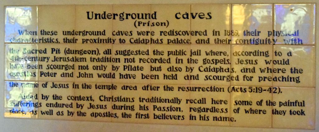 Day 9 Third Stop: Peter in Gallicantu. At the site traditionally associated with Caiaphas’s house is the Church of Saint Peter in Gallicantu, with gallicantu being a Latin word meaning “cock’s crow.” This is where Peter denied knowing Jesus three times before the cock crowed twice in Mark 14:66–72, as Jesus had predicted earlier in the same evening in Mark 14:30 and which Peter had vehemently argued could not happen. The current church dates from 1931. Below the church is a cave which could have been where Jesus was held for the night after his arrest.