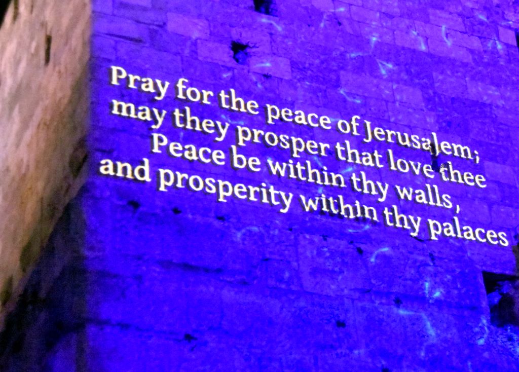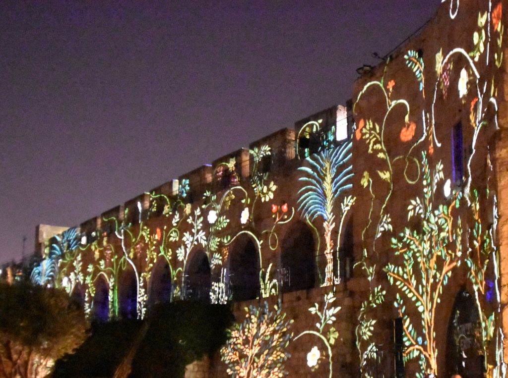 Day 9 Bonus: King David Lightshow at the Tower of David. A remarkable lightshow on the interior walls of the Tower of David on the Old City’s wall told David’s story. The lights brought the walls to life in a magnificent way.
