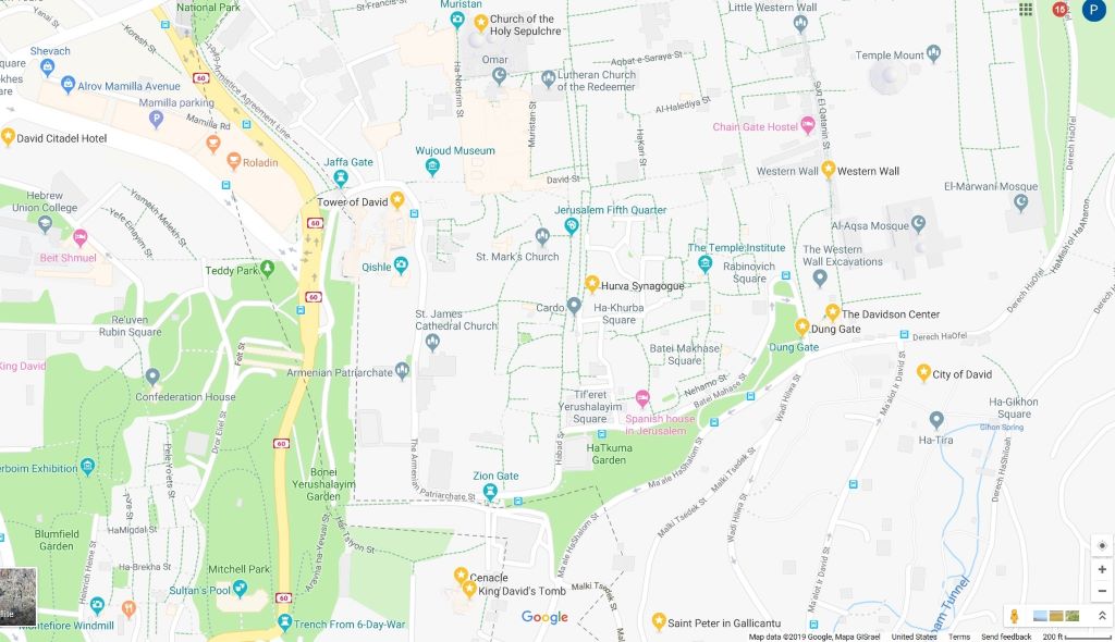 We entered the old city via the Jaffa Gate which took us into the Armenian Quarter, through which we walked to the Jewish Quarter. The Old City’s division into four uneven quarters (Muslim, Christians, Armenian, and Jewish), in addition to Temple Mount, dates from British rule in the 1840s. The quarters represent historical development rather than ethnic segregation.