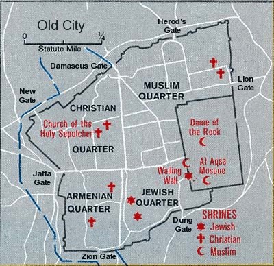 Note the bridge on the right of the picture. This is one of the entrances into Temple Mount and the Al-Aqsa mosque compound.