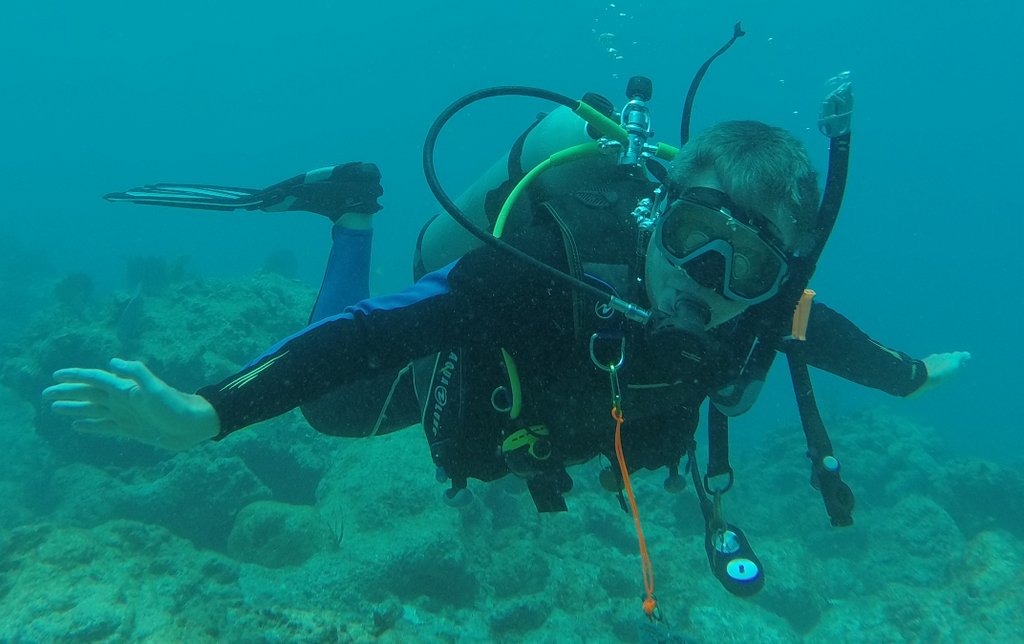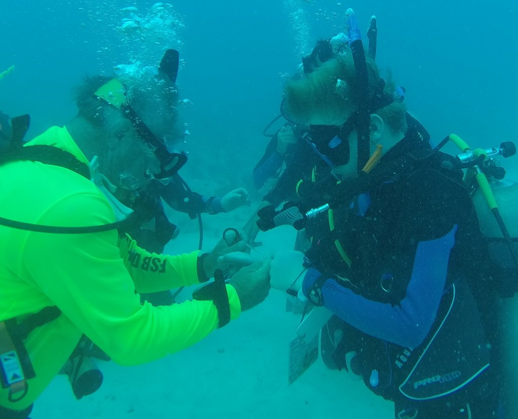 The catalyst for Samuel to learn how to dive was a trip to Florida’s Seabase with scouts in March 2019. These were his first dives after qualifying the previous year. Seabase’s setup was very good for new divers. Our instructor, Dale Davis, a former air traffic controller with the air force, was fantastic both as a dive instructor and as a mentor for young scouts. We completed eleven dives to approximately 30 ft over six days.