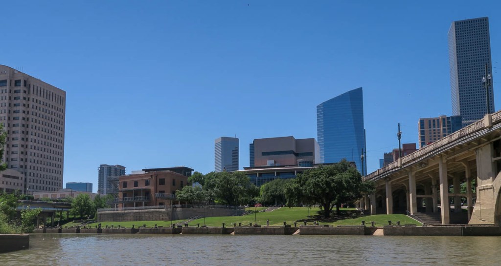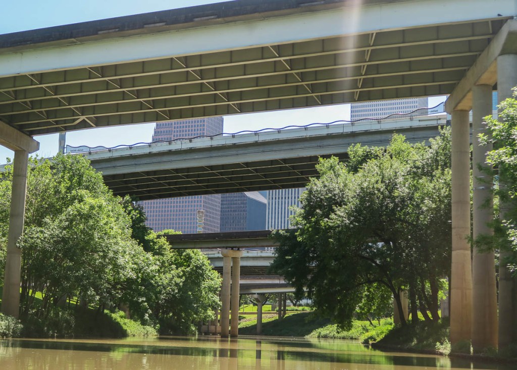 Floating into downtown Houston was the highlight of the trip. Even though the traffic roars overhead, it was cool and tranquil on the river. Evidence of Harvey remained, reminding me that everything that I could see had been underwater. Yet my trip fittingly ended where Houston began.