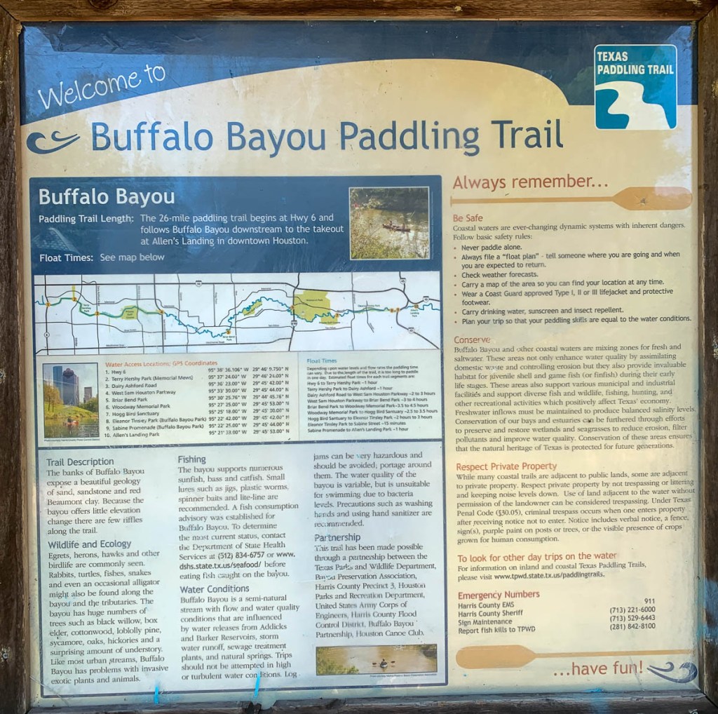 This is a “catch-up” post from May 2020 to describe our second outing on the Buffalo Bayou.
