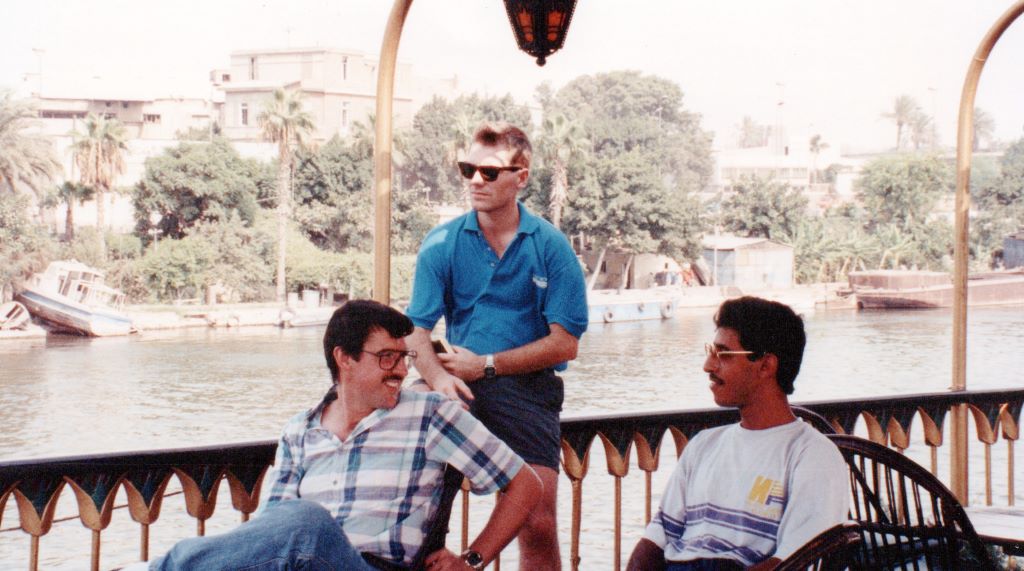 The first gulf war had ended at the end of February, and I flew to Dubai in the middle of March with my one suitcase to sign my contract and for induction with my “class.” The Schlumberger office was in the World Trade Center, the only skyscraper at the time in Dubai, and we stayed next door at the Hilton. We were the eighteen engineers who made up “ETC-35,” the thirty-fifth school at the Egypt Training Center that we would attend soon. While the gulf war was over, it felt very close. We played beach volleyball at the Hilton Beach Club with US marines on R&R. There was smoke in the sky from burning oilwells in Kuwait. One member of the class, Mark Balen, was transferring from another division and had been at the base in Saudi Arabia when a SCUD missile landed next door. We learned of the tragic accident when a truck drove into a burning oil slick in Kuwait. I was glad that Egypt, where I would be training, and Oman, where I would be working, were far away from Kuwait and Iraq.