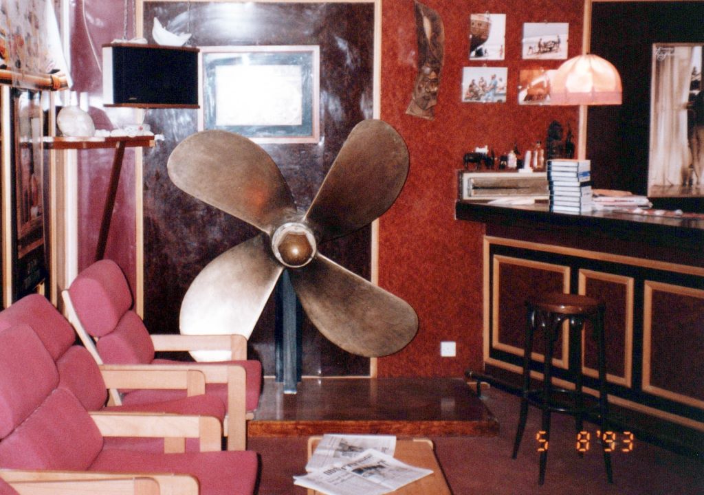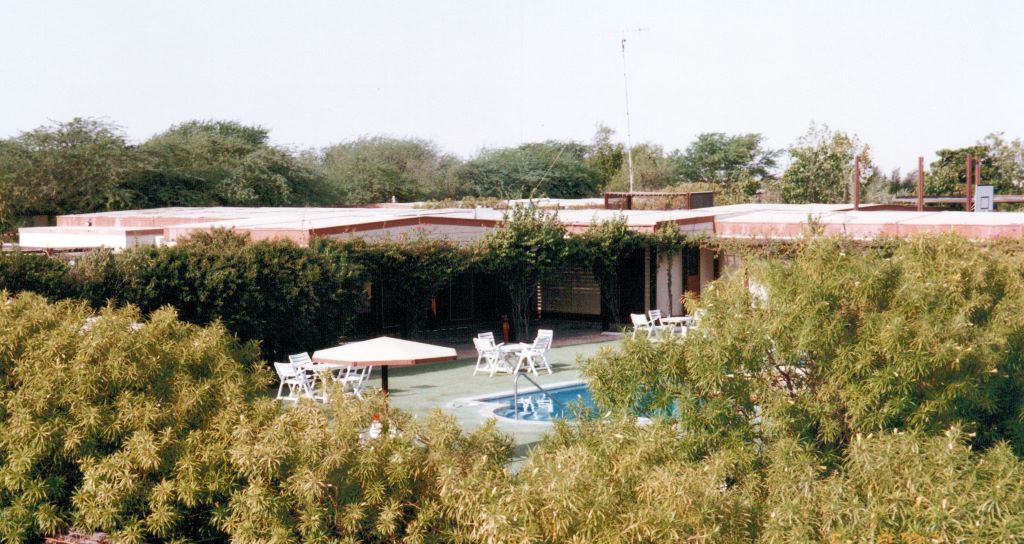 We lived in what must be described as a luxurious camp. The same layout was used in Fahud. Irrigation systems fed the vegetation and we had a swimming pool, movie room, gym, game room, though life centred around the dining room and bar. There was a basketball game each evening, but my American colleagues were rather better at the game than I was. The centrepiece of our bar was a large propellor that the staff had rushed to salvage when a ship ran aground a few years beforehand. I took this set of photos when the Fahud camp burnt down, and they wanted to know what the camp had looked like.