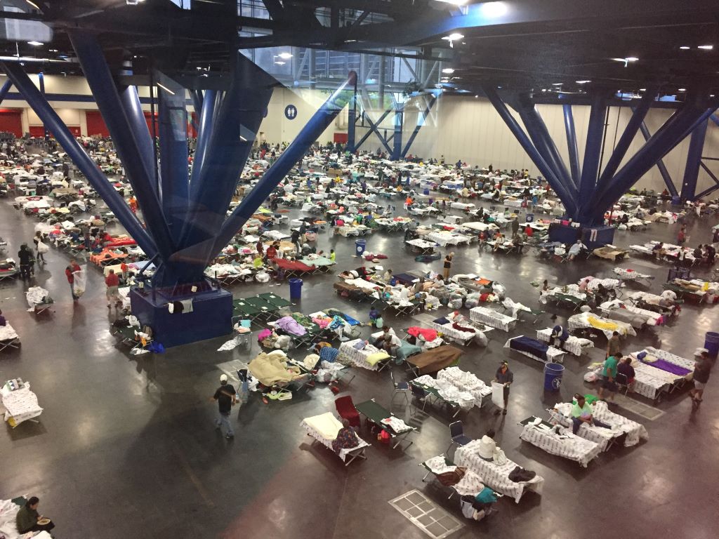 During my many years in Houston, I have very rarely met anyone from work outside of work. One exception was at the George R Brown convention center when I bumped into Bahar Romman and her daughter who had come as volunteers to help where they could.
