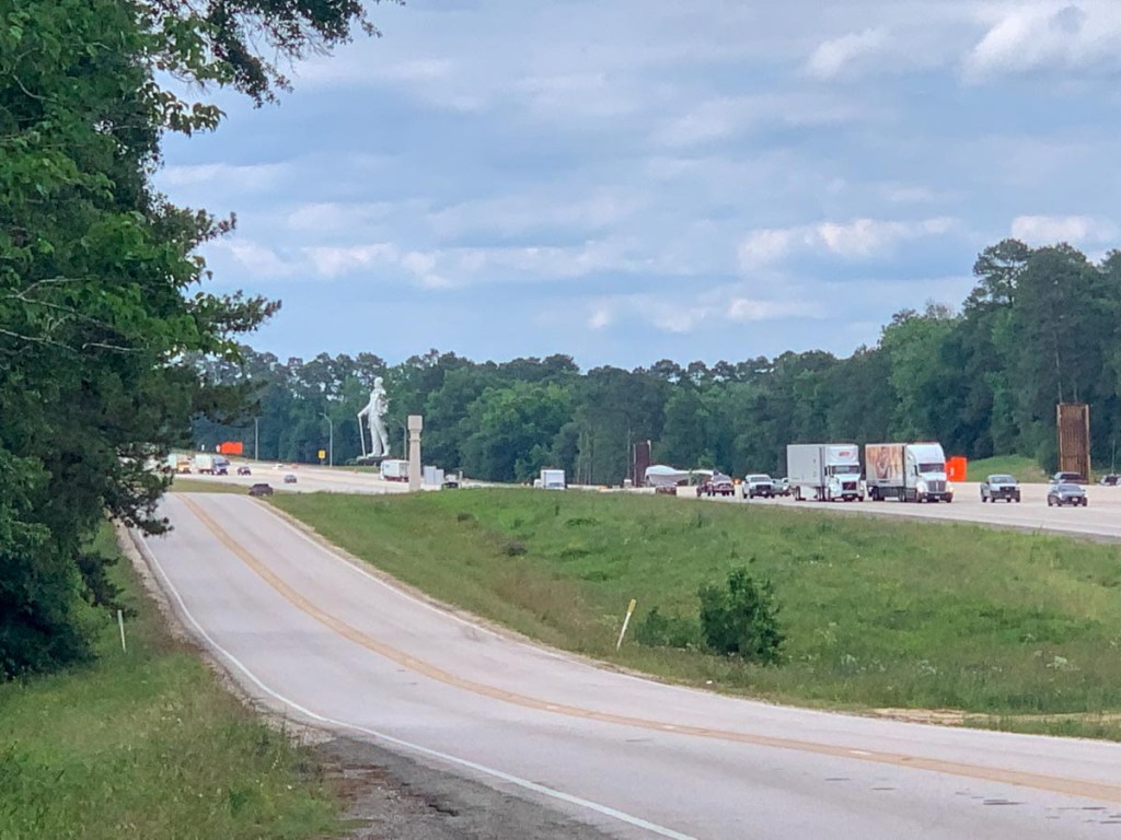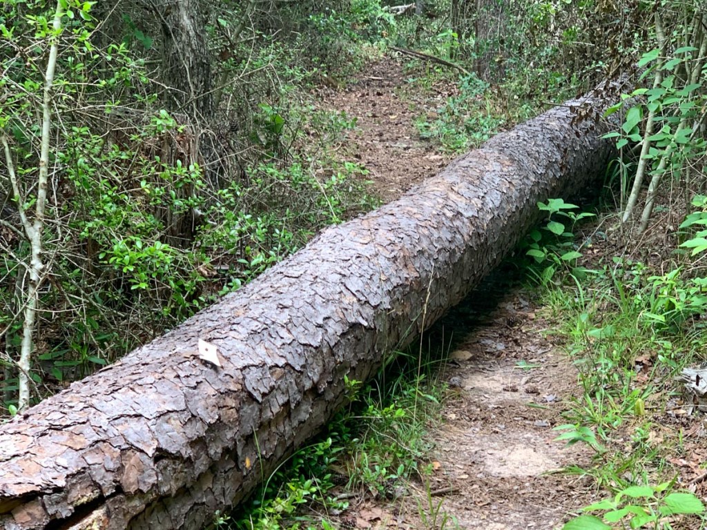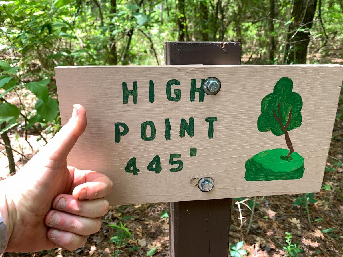 Got an earlier start so was hiking by 7am. My main memory of four notch when I did it a couple of years ago was the spiderwebs… That time, I was heading East and started from the hunter camp when it was still dark. The web would be illuminated by my head torch about a millisecond before my face walked into it… Another great advantage of a headnet – didn’t even notice them! Walked over 2-3 creeks which were easy to hop over – but I guess one of them is Boswell which is chest deep in big rains. I had to walk the log over one. Area had had a recent burn (March 13) – amazing how it grows back so quickly. Happy to hit the midpoint, though that area was completely flooded and there were just a few mozzies… Filtered water from Winter’s Bayou. The good news – very few mozzies because of birds and maybe bats that live under the bridge. Bad news – very sandy and muddy and yes I did slip… The bridge was a good seat for lunch. The road walk is not the most fun, but tried to embrace the variety, and a nice history lesson about Yoakum! Into Phelps which I had not been to before and was nice. A couple of small creeks with a little water, and then I managed to make it to the LSHT summit! Phelps campsite had a chair and was great for another snack/rest before the next roadwalk along Park Road 40 and under I45. Lots of workers laying asphalt and I was worried but I just kept walking and no one stopped me! Said hi to Sam (Houston statue) before heading back into the woods at TH7 and down to Alligator Creek which is good water. Then made my way onto the pipeline ROW that goes from Camelia dam into the State Park and camped on the top of the hill. Nice cleared ground and an AT&T signal. That was after I discovered after starting to cook that my first site was right next to a dead tree just waiting to fall over… Worried about chiggers in the grass, but 3 days later my feet still seem OK! This was my longest day at 18.3 miles and I could feel it. No problem getting to sleep!