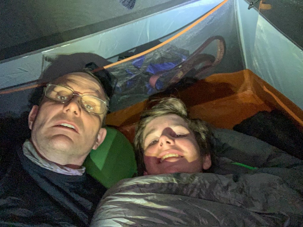 Woke up to alarms at 5 am. 45 degrees (F) inside the tent so probably upper 30’s outside. Both had had a restless night. P was cold at times. Fixed breakfast but it took a while to filter water. On the trail at 6:50. Both felt good. Met a guy we think was from Minnesota hiking up to Monarch. He was uncertain about Collegiate West as it seemed too much up and down even though he had previously done the AT and the PCT. Hiked out to the trailhead then along the road via a toilet. Crossed US50 and then climbed switchbacks for an amazing view up the Fooses valley back to Monarch Crest. After making the crest hiking through pleasant forest we chatted with Natalia and Cordelia who are also hiking the Collegiate Loop having started in Twin Lakes. Their only resupply was Princeton. Hope to see them on the west side (we did not see them again 😦 ). Met a girl from Romania who lived near Eagle who was doing some of the Collegiate Loop. And met a couple with two dogs wearing dog shoes and looking very tired. Hiked over and down to the Angel of Shavano campsite and chilled on a picnic table. The well wasn’t working so filtered water from the river and a kind RV lady gave us two key lime pie flavored bars (our first trail magic!). After the rest marched back up and out of the valley and it seems a long plod to the Mount Shavano trailhead where we laid down for thirty minutes. P slept. A bit more traffic going up this 14er, including a group of 8 girls mostly youth that we overtook later on the CT. Our original plan was to finish the day about here but we had several options to go further. We marched on watching the miles pass. Filtered water in Sand Creek with a rest where there was a great campsite. Finally made it to Browns Creek at about 6:30 for an even better campsite. P managed to give his lower legs the ice cold water bath. Filtered water through gravity system P set up with the Sawyer squeeze. Managed to get into bed shortly after sunset at about 9 pm. Ready for a 6 mile hike to the road then a 2 mile hike to Princeton for breakfast in the morning. One highlight of the day was actually seeing a woodpecker peck!