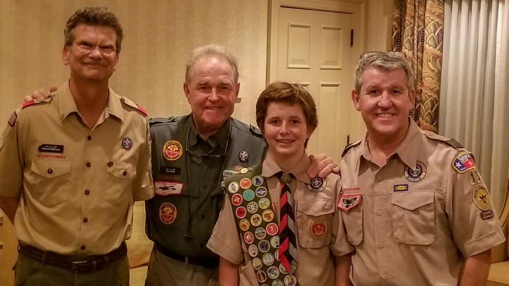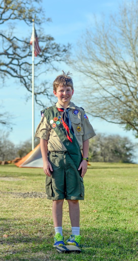 Next up was Samuel’s first backpacking campout with the troop to the Lone Star Hiking Trail in the Sam Houston National Forest (which I later caused him to loathe), he completed the Communication and Swimming merit badges, and he started serving as Troop Bugler at the Garner State Park campout which was a troop favorite.