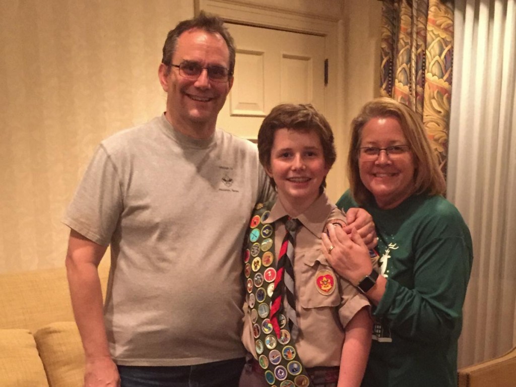 Having achieved his Scout rank in September 2016, he earned his Canoeing Merit Badge during a campout at Huntsville State Park
