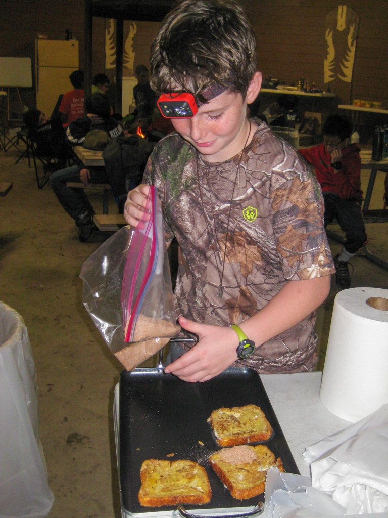There are of course those campouts with no photos… Ours was the December campout to Big Thicket in East Texas where the scouts unknowingly hunkered down through tornado warnings with no cellphone reception, and the phone/camera was one of the casualties! Everyone dried out sufficiently for the Fall Court of Honor which was immediately afterwards.