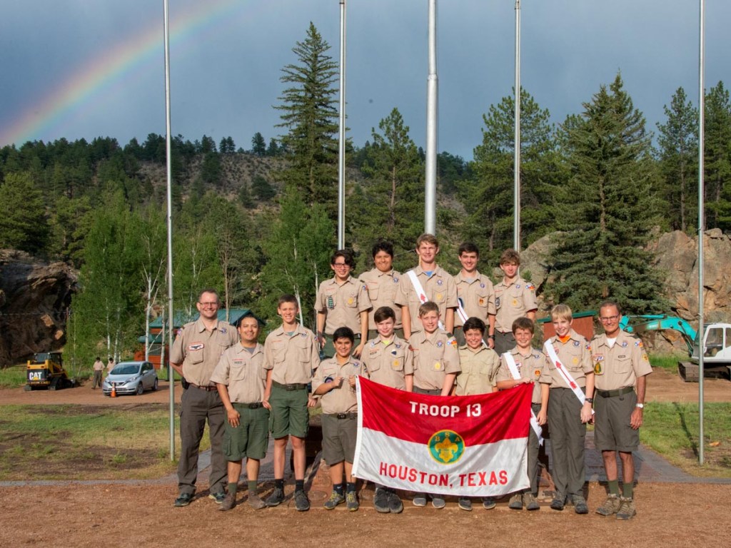 Next was Samuel’s third and final summer camp. After the previous summer’s experience in the heat, the troop decided Colorado was a preferred destination. 11 scouts with four adults headed to Camp Alexander in early July 2018 and had a fantastic time. As well as completing six merit badges (Archery, Wood Carving, Mining, Search and Rescue, Leatherwork, and Rifle Shooting), Samuel enjoyed the Whitewater Rafting.