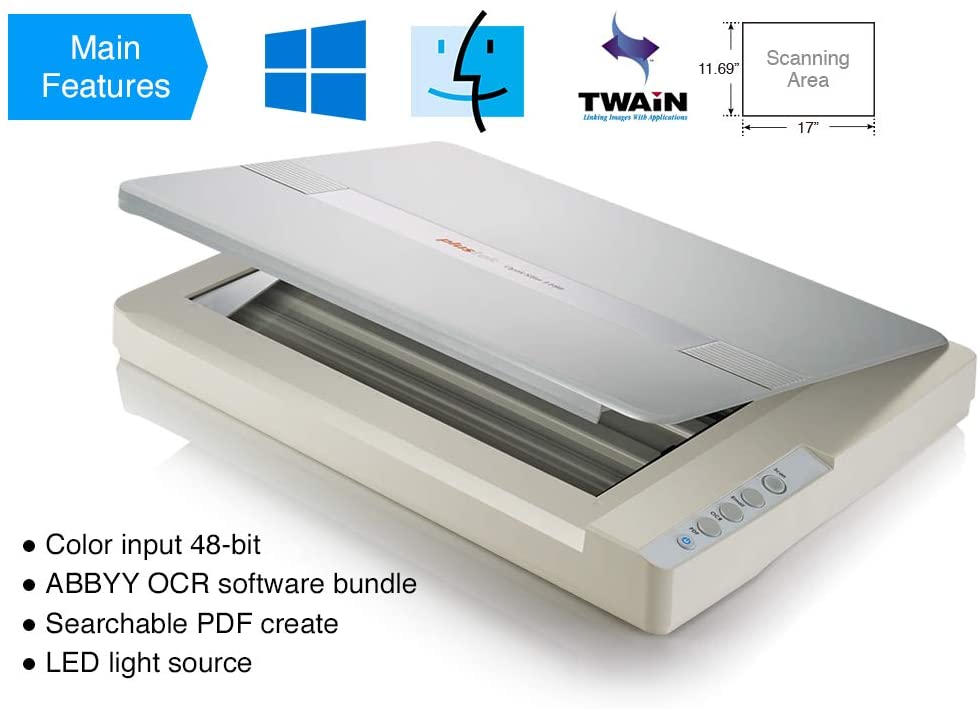 I chose to buy the Plustek OpticSlim 1180 scanner. It describes itself as A3 and it has a scanning area of 12″x17″. It cost $349 from our friends at Amazon.