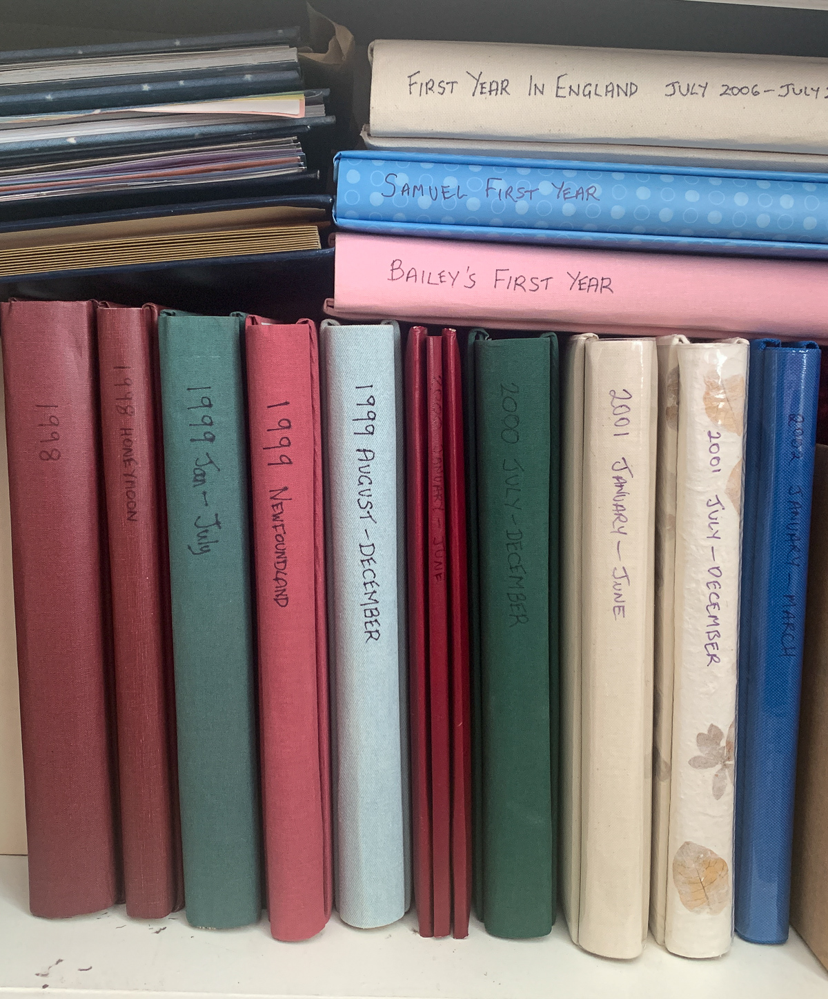 And here is the result: one large bookshelf condensed into a few cases, and scrapbooks safely backed up!