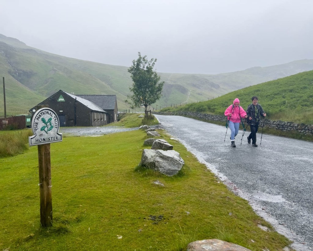 With Team Sloth together again, and everyone feeling cold, wet, and hungry, it was a 4-mile march down the road from Honister Pass into the Borrowdale Valley. Were we glad to see the Langstrath Country Inn! And after a day like that, I need to publish this post before I fall asleep… Tomorrow is a shorter 9-mile day, but there is a steep climb and the weather forecast is uncertain. But after today, it will take a lot to stop this lot. And after tomorrow, We have a well-earned rest day in beautiful Grasmere.