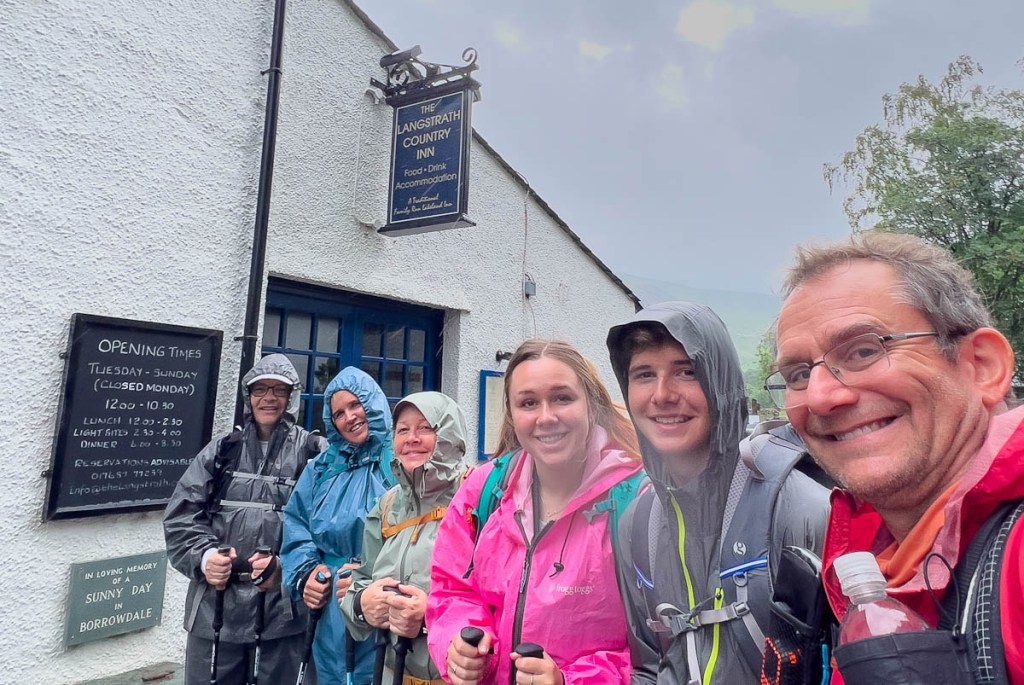Here we were faced with the choice of the high route or the low route. Samuel and Bailey took the high route which followed the ridge to Helm Crag and a steep descent into Grasmere. The rest of us took the low route down the valley. While the rivers and waterfalls were beautiful, the path was rocky and the multitude of river crossings got old, and made our bones and muscles feel very old! It seemed to go on forever, but the rough path finally changed to track and then road and finally smooth footpath that took us right to our hotel for the night. Just as we arrived, Samuel and Bailey arrived from the next road over having completed their high route.