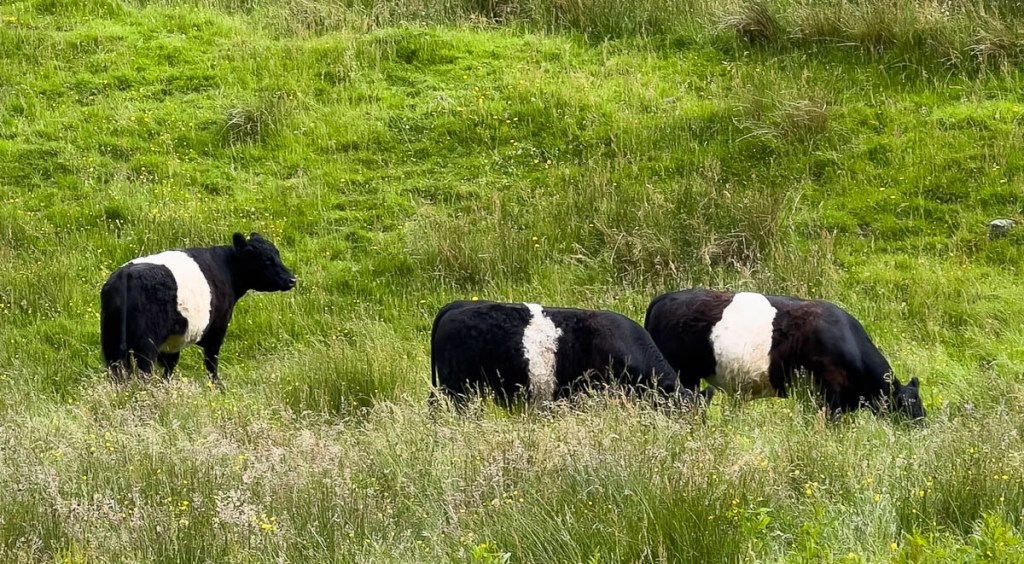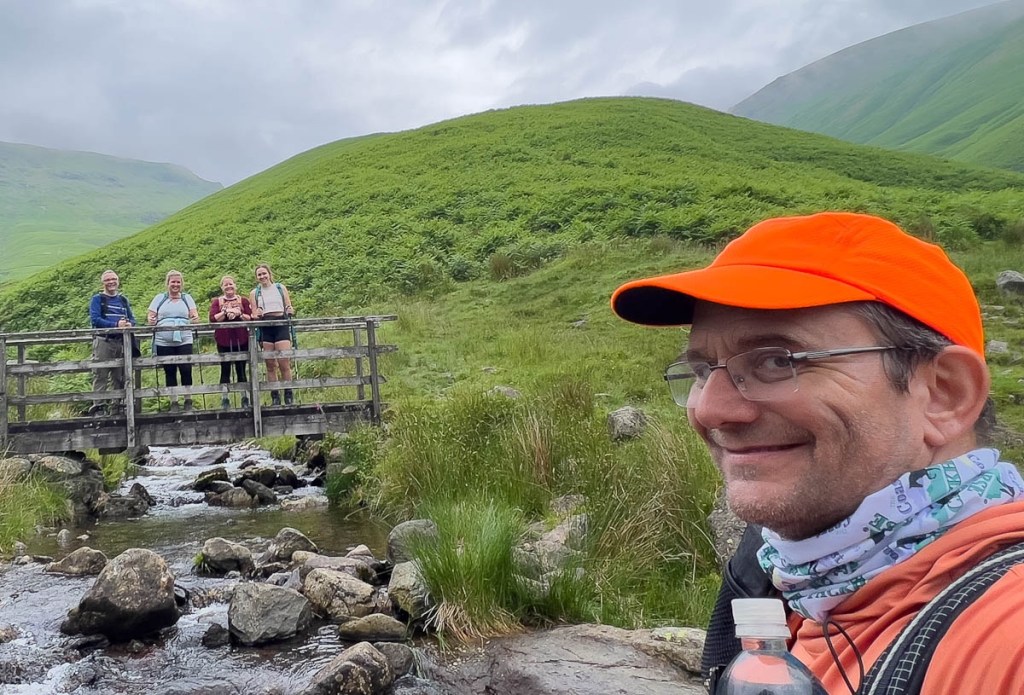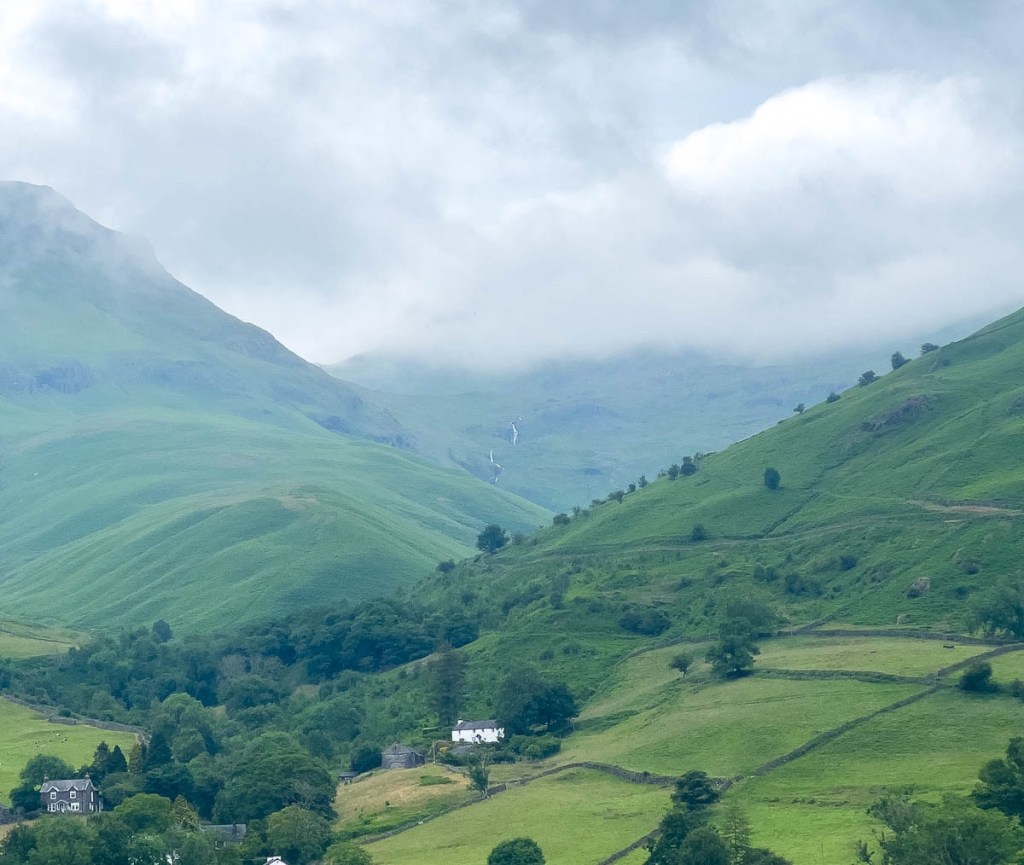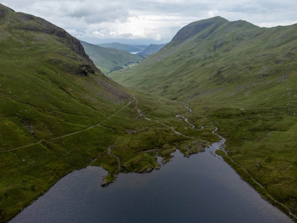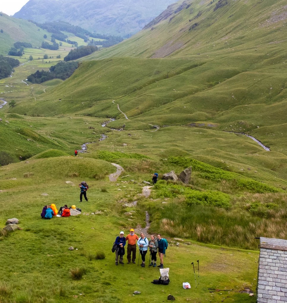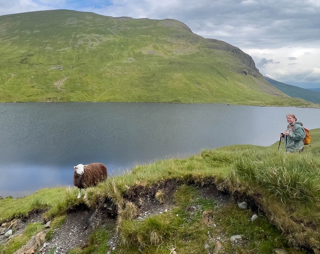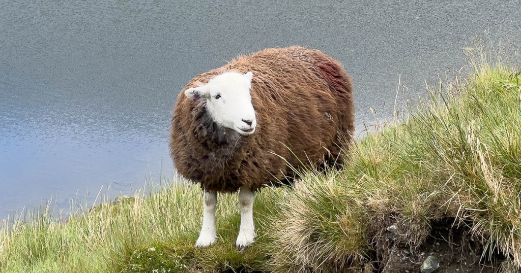 Today we completed 9 miles in about 6 hours, and the consensus was that it was the easiest day so far. Bailey’s Achilles was uncomfortable but she was able to hike with minimal impact. Unfortunately Tracy’s blister got worse, though she remarkably powered through the pain! After leaving our hotel together, Samuel headed off to do the “high route” up Helvellyn (the third highest peak in England) and along “striding edge,” a famous scramble on the top of a knife-edge ridge. The guidebook says to allow an extra three hours for that route, but Samuel still beat us to the Patterdale guesthouse by about an hour! We made good progress at first up smooth paths towards Grisedale Tarn, having an early lunch at its outflow towards Patterdale. The weather had been kind on the ascent, but the rain came just as we got out our sausage rolls from Lucia’s! So, lunch was quick and we started heading towards Patterdale, after a short detour as I took the wrong route, but convinced the others it was just because we needed a bit of bog on today’s journey! I managed to get a few drone flights in between the rain showers, though the gusty winds made the video a bit jumpy. The descent towards Patterdale seemed rockier than the ascent. After crossing a bridge towards the bottom, the path smoothed out then turned into a road, and we were marching for the last mile or two. We were even treated with some Oreo cows! We were given a very warm welcome at the Old Water View, which Wainwright himself stayed at, though it has been well renovated since! Our hosts recommended Fellbites in nearby Glenridding which worked very well for dinner and they helped arrange the short taxi ride as rain looked imminent.