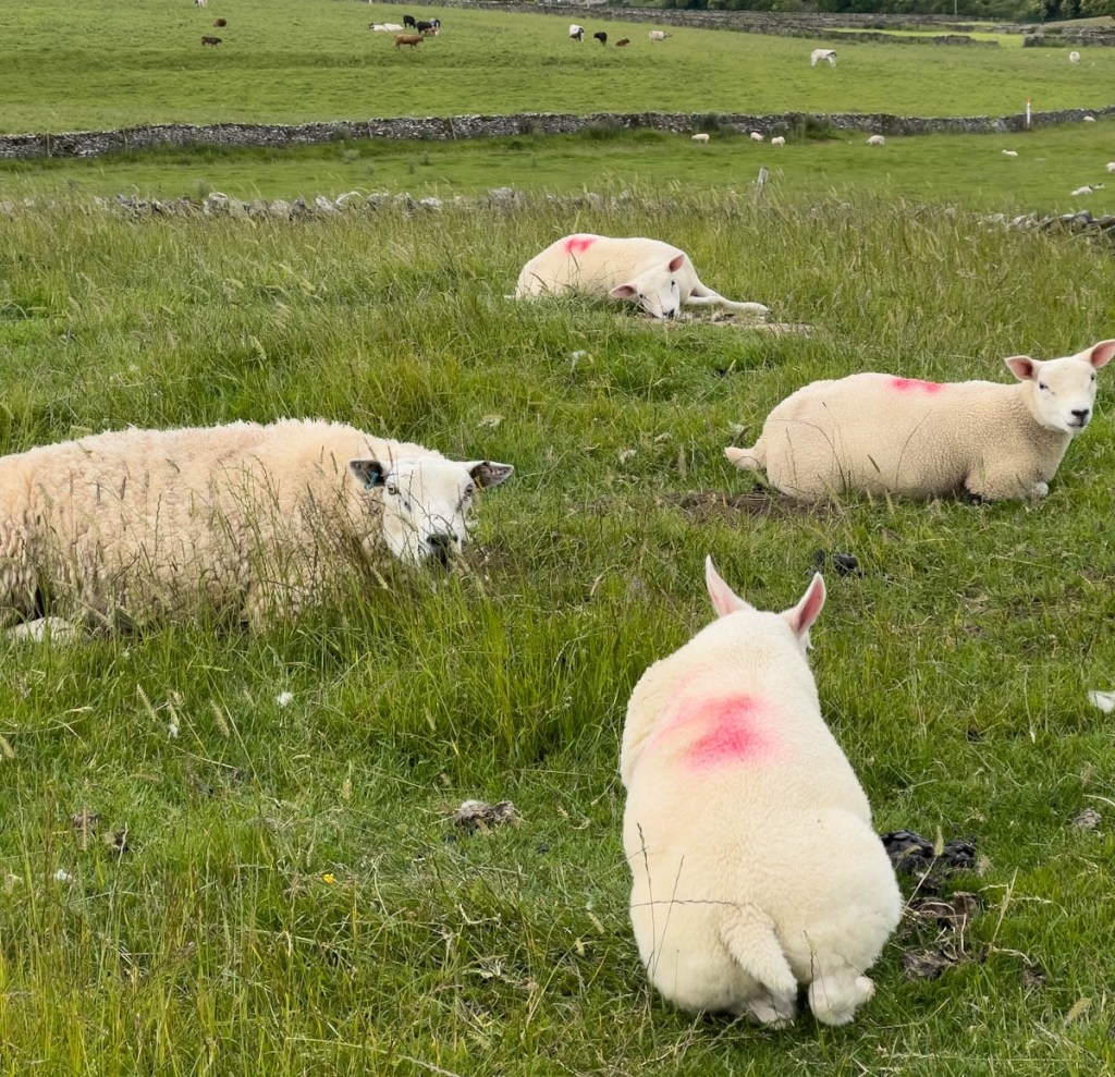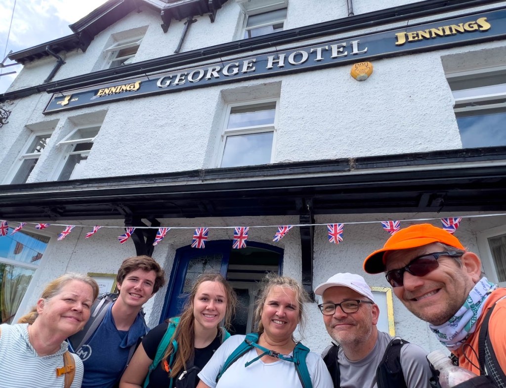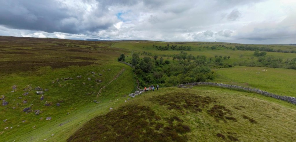 Today was a refreshing change and a relatively short one at 7.8 miles in just less than 4 hours. Most importantly, the whole team was hiking together again! The walking was across moorland and relatively flat farmland on spongy grass, allowing the legs to recover from the Lakeland rocks. While we are still in Cumbria, the trail has transitioned from the Lakes into the Yorkshire Dales National Park with little fanfare and the above change in landscape. The weather was threatening at times and occasionally delivered the odd shower, though the distant Lakeland fells looked a lot wetter! We did not find the Oddendale stone circle, though we did not look hard as it was about to rain. The rocks known as Robin Hood’s Grave are difficult to miss, and the weather was kind enough for a drone flight. A couple of couples overtook us doing a 20-mile day toKirkby Stephen. One couple crossed is doing the C2C East to West, calling their Orton to Shap a “rest day.” While our rest days are complete rests, this leg was refreshing with the open moorland views. We arrived in Orton early enough to enjoy lunch at the Orton Scar cafe and couldn’t skip Kennedy’s chocolate shop. A fine dinner at the George Hotel set us up perfectly for tomorrow’s trek to Kirkby Stephen.