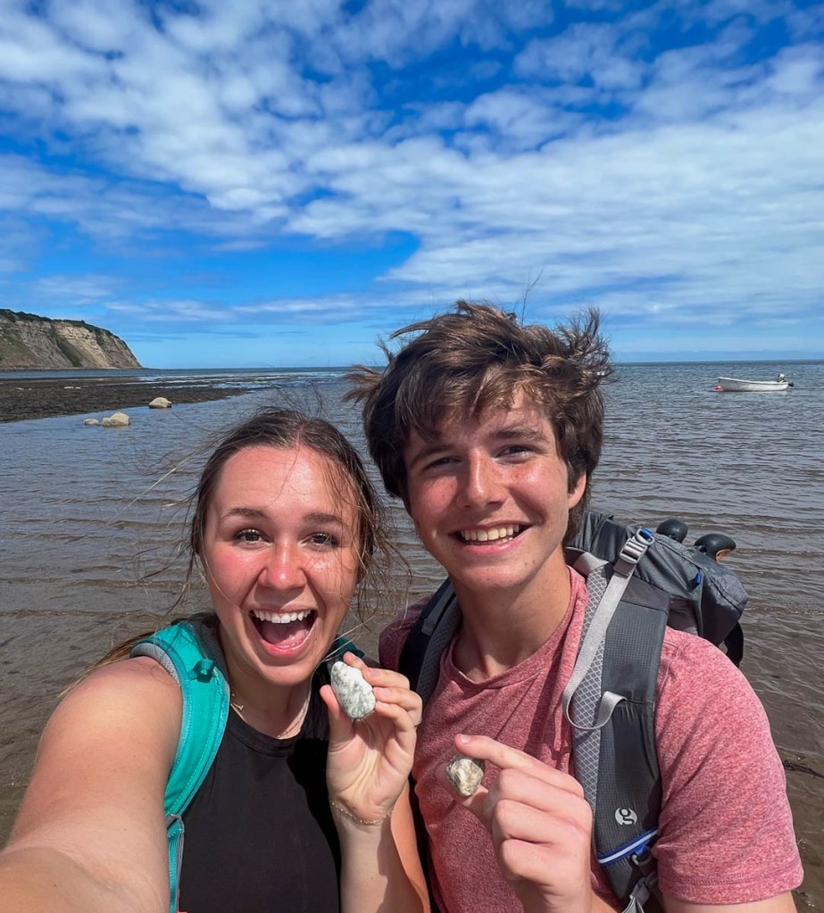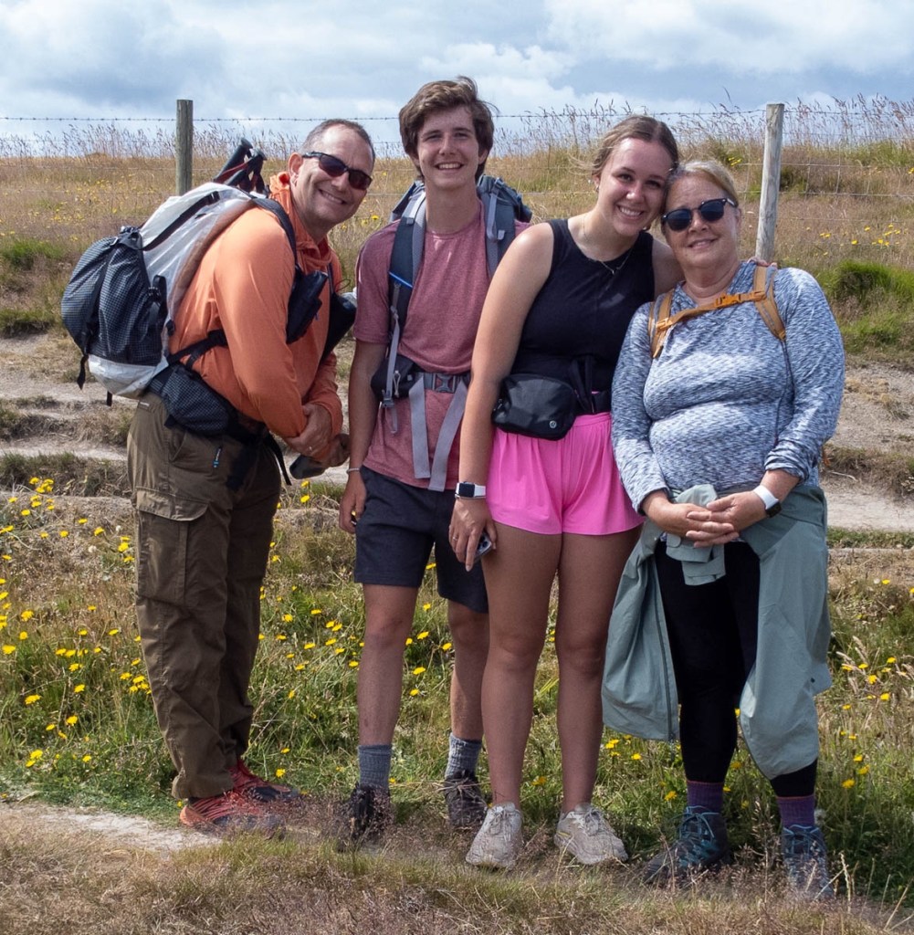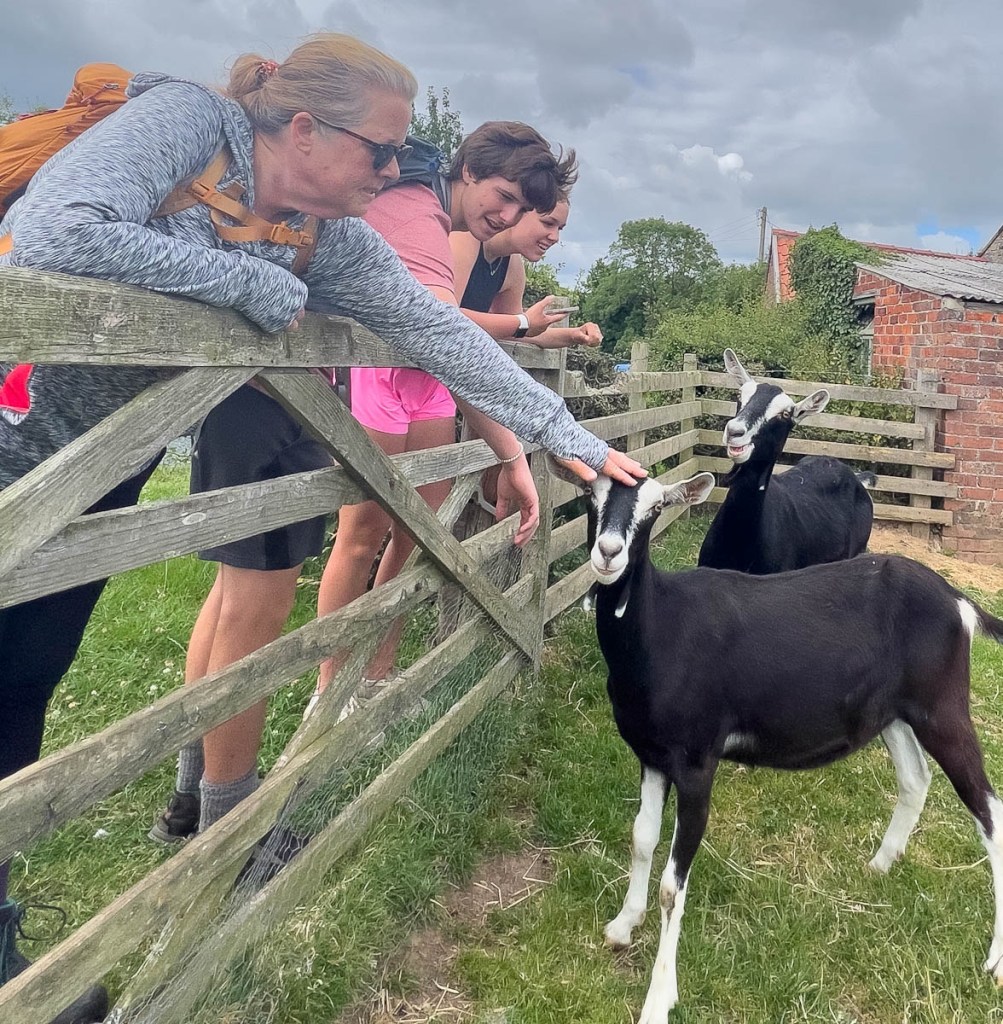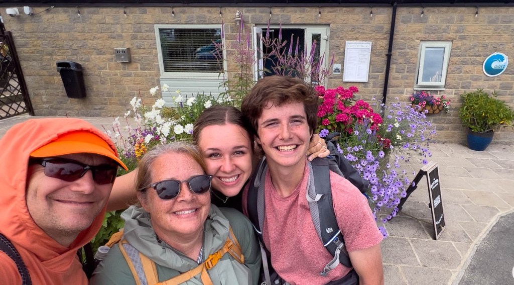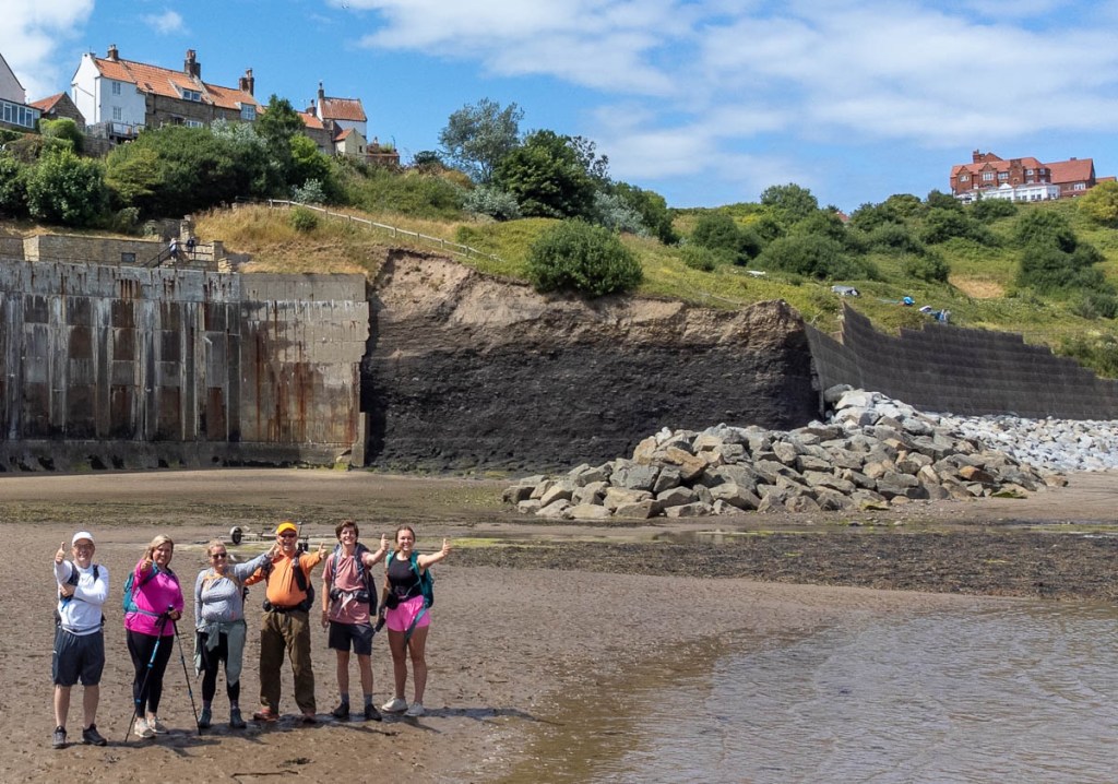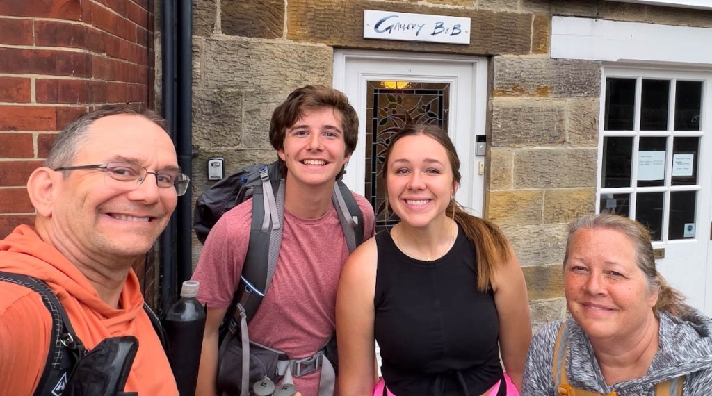 This is what we set out for when we left St. Bees. With the finish this close, my family’s primary focus was finishing. With what looked like being the longest day with plenty of climbs, we decided to leave early at 6am. Of course, it was very light, but everything was very peaceful. The initial hike out of Grosmont was by road, so it wasn’t like Kidsty Pike and actually easier than we had expected. While many had recommended stopping at the Falling Foss Tea Garden, it wouldn’t be open when we would get there. While Little Beck Wood sounded nice, we realized we could save at least a mile by missing the wood and cutting the corner by road. While the B road was quite busy, the time and distance saving was well received. We plodded on, enjoying the flowers and seeing some very healthy goats for the first time. We’d planned for lunch at the Coast Cafe Bar at a caravan park. Without knowing what to expect, our hopes were not very high, but the food was fantastic! It was one of the best meals of the trip, and a lot of that was because it was different, and with a good salad. Freshly energized, we headed to the cliff path and rejoined the Cleveland Way for the cliffside meanderings to RHB. It was another great opportunity for drone flying. With the gang’s patience running a bit thin, I walked ahead so I could get flying and be ready for group photos. I had high expectations of great cliff photos, but struggled to get them. They were ok or good, but I struggled to capture how we were on the edge of such a precipice! I had fun trying in a couple of places, falling behind the others who marched on when I was putting everything away. I tried to catch up, but they arrived at the hotel before I did, meeting up with Dean and Tracy. We all walked down the steep hill together and onto the beach. Of course, the tide was out, so we walked out across the sand to the water’s edge to cast our Irish Sea pebble into the North! The rapidly advancing tide made sure we dipped our footwear too. We had completed our Coast to Coast with a final day of 14 miles in 6 hours. Woo hoo!