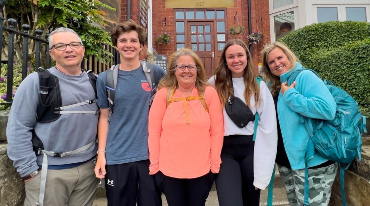 Day 0: It starts with the Sir John Barrow monument on Hoad Hill in Ulverston. The day before we started from St. Bees, we stayed in our former hometown so that we could visit friends and climb up Hoad. Our love of the Lakes was born here, so it was a fitting prelude.Day 1: St. Bees to Ennerdale Bridge. The start of the hike is a tremendous experience on the cliffs of St. Bees Head. I tried to capture it with my drone and other photos, though this panorama by Janet reflects our experience the best. After the cliffs, the walk through farmland and small villages is a great depiction of rural England.Day 2: Ennerdale Bridge to Stonethwaite. Our epic day of two halves. The day started with a hike along Ennerdale with the Lake’s fells growing ever larger. The weather was fine, and the wind coming off the lake reminded us all how great life is. The grey clouds in the distance were an ominous sign.Day 2 bonus. OK, I know I said one photo per day, but this day earned two. After lunch, the rain and wind came. Janet, Bailey, Tracy, and Dean were all relatively novice hikers, so had experienced neither these weather conditions nor this type of terrain. Hiking through rivers up a steep mountain was just something they didn’t do, but that is now exactly what faced them in hurricane force wind and rain. The way they faced this challenge and pushed through “the toughest day of their lives” so impressed me. The picture above, a frame taken from a video of Dean helping Tracy cross Loft Beck, is the closest to capturing the moment (which lasted hours). Samuel took “the high route” by himself. On his own, he faced the most severe weather he has experienced. Thankfully he completed his hike unscathed, but he learned a key lesson about not being indestructible. Photographs come nowhere close to capturing his experience. Samuel learning from such experience is a highlight for me! The incentive during these climbs was the sausage rolls at Honister Mine Cafe. We arrived as they closed, but they had sold out of sausage rolls hours earlier. We still had a long rainy walk down the hill into the Borrowdale Valley. Welcome to Lake District weather!Day 3: Stonethwaite to Grasmere. While we had a good rest, it takes more than one night to recover from our “day 2.” Day 3 started well, but we summarized it by ‘WE CLIMBED A WATERFALL!” The picture shows Tracy part-way up the climb to Lining Crag, where the path followed a stream in full flood. Just before the ascent, she had taken her first fall in the bog, but continued to show tremendous determination. While the kids had no issue in climbing, we were passed by a fell runner and his dog and were buzzed by RAF jets. Day 4: Rest Day in Grasmere. The Calllaghans visited during the day, and it was great to walk around the touristy spots leisurely. The highlight of the day was a fine dinner at Lewis’s Bistro, with the fells as the backdrop. Day 5: Grasmere to Patterdale. This is a classic Lake District hike. Five of us took the low route, which involves a steady climb to Grisedale Tarn on good paths. The weather was mostly fine, and the views showed the best of the Lakes. Samuel went off ahead of us up Helvellyn and then Striding Edge, where the weather provided excellent conditions. Day 6: Patterdale to Shap. This was the first day we hiked without Tracy and Dean which was a downer. The hike up to Kidsty Pike was long, hard, and with sporadic showers. We chose an alternate path down, which not only added an additional sense of adventure, but also yielded a kind route with fantastic views. It was an appropriate way to say farewell to the Lake District. Day 7: Shap to Orton. Having left the Lakes, we entered open moorland. It is very different scenery from the Lakes and remains impressive. Team Sloth was at full numbers again and the weather was kind, allowing the above picture from my drone. Perhaps the most memorable part of the day was my becoming a quivering wreck while taking the footbridge over the M6 which lit up all of my scared-of-heights buttons. Day 8: Orton to Kirby Stephen. This was a fantastic stroll through the English countryside. While the terrain was similar to the previous day, it seemed more joyous walking through the open moorland and fields with sheep. England’s centuries-old system of public footpaths across private land as a legally protected right-of-way makes hiking in England special. Dean’s toe pain sadly prevented him from hiking this day. While we missed his jokes on the trail, he made up for it that evening by recounting his adventures in Kirby Stephen. Day 9: Kirkby Stephen to Keld. The “official” highlight of this leg is likely the Nine Standards, monuments that lie on England’s east-west watershed, so act as a symbolic halfway mark on the Coast to Coast. However, on the descent, one has to pass through THE BOG. Tales of sinking up to one’s thighs are shared. We were passed by someone walking barefoot through the worst bits, which oddly seemed wise. Our team tried very hard to stay dry, dreading either falling in, or the unimaginable losing a boot! I am sure Tracy suffered a little PTSD after this experience. Depending on who you ask, it wasn’t too bad as it hadn’t been raining much recently. After the bog, the walk was pleasant until the final mile up to Frith Lodge. When planning the trip, an extra mile up a side valley doesn’t seem too much. When we headed up the valley after 13 miles of hiking, we saw a farmhouse perched alone at the top of one of the valley sides and could not accept that was where we were going. The path is exceptionally cruel as it takes you past the lodge while climbing. However, on arrival, all that pain is quickly forgotten after Karen and Neil’s warm welcome with tea and cake. Frith Lodge was the most welcoming and comfortable stay on the trip where we were simply made to feel at home, in a mighty fine home. Day 10: Keld to Reeth. The adults took the low route and had a fine 
