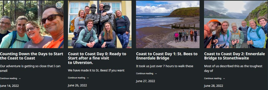I have evolved my recordkeeping on previous adventures, balancing camera equipment with photo quality, capturing raw feelings “in the field,” and the time to publish on social media and a memory book on return. Anything written on the same day is so much more meaningful. I started to post using a WordPress blog, as it gives greater control and access compared to the mainstream social media platforms, though it has annoying quirks. For this trip, I wanted to take photos with both my phone and drone, edit and enhance them, and publish daily using just my iPhone. The pressure to perform rose considerably when Tracy and Janet told all of their friends to subscribe, increasing my followers from 14 to over 100, with many more accessing via Facebook and Instagram. My site received 651 views from 274 visitors on 30th June, with the post of our Patterdale to Shap journey alone getting 359 views in total. Janet’s friend in Australia shared how she’d get up before 4am each morning to read, and strangers would share encouraging comments or compliment Bailey’s styles. Another friend shared how he read the blog to his family at dinner each night. Knowing that people from 46 countries were following our journey helped motivate me to publish each night through preparation and practice before the trip enabled it. To cap it all, I have a tremendous real-time record of our daily adventures. The blog made it easier to create a memory book (I use Shutterfly); while it remains a bunch of work, I love to have the memory in print.