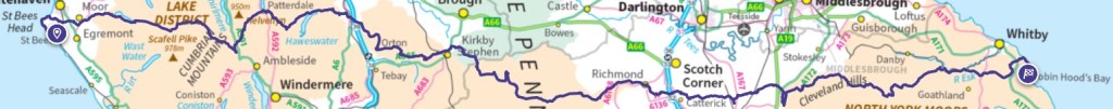 Wainwright’s 1973 publication described the walk as a long-distance expedition from one coast of England to the other, through some of the grandest territory in the country. He encouraged flexibility in both duration and route as the participants saw fit. The intent is to enjoy the magnificent scenery. Since Wainwright’s publication, many thousands have pursued the idea of traveling from the Irish Sea to the North Sea. The fastest hiking time is less than two days, and cyclists traverse the country in less than a day. Others might plan a crossing on foot but take a vehicular shuttle (bus, taxi) daily due to injury and focus on enjoying their journey and destinations differently. We planned to walk the 192 miles over 16 days which averages 12 miles daily.