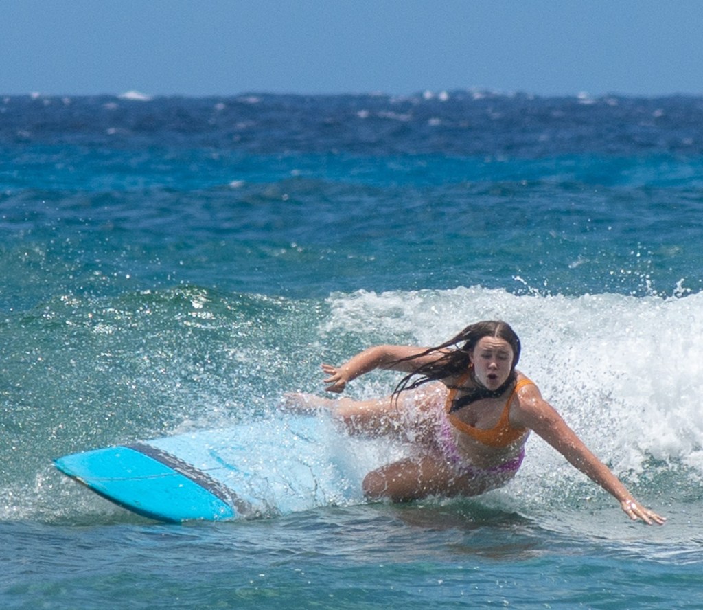 The surf instructor took us about 2 miles along the coast to Chun reef, and everyone else found a spot in or out of the shade while I had my lesson. After a short briefing on land which made it look so easy, the first challenge was paddling out to the surf. I fell pretty quickly on my first wave, trying very carefully not to scrape the shallow rocky bottom as waves kept crashing on me! I went around maybe 7 times. I managed to stand up once without falling in.