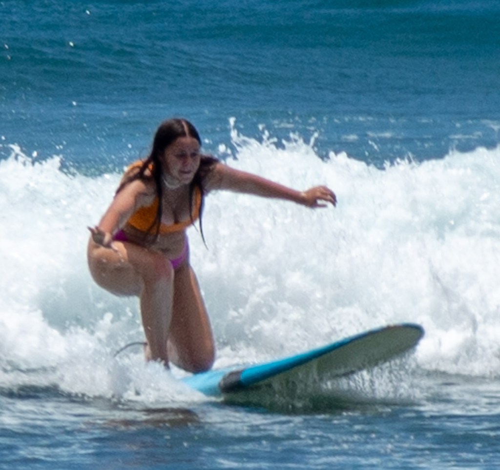 I struggled to keep track of where the kids were in the surf. I lost track of Kylie early, until I saw her paddling in. She had caught the first wave very well, and I was really bummed I hadn’t caught a photo. When she fell off the board, her shoulder caught the bottom and cut it quite badly. The thought of sharks encouraged her to get out of the water!