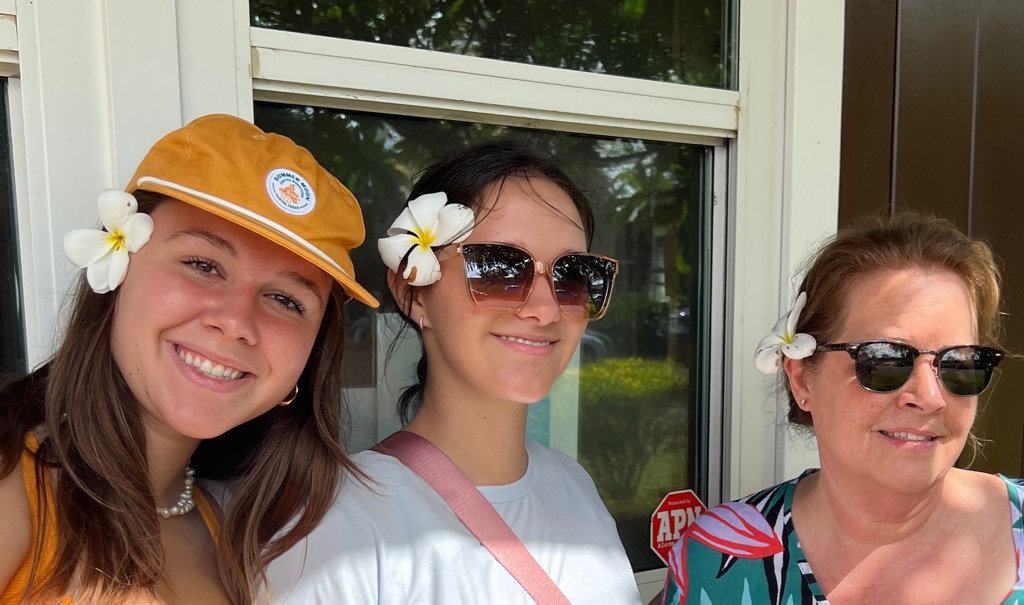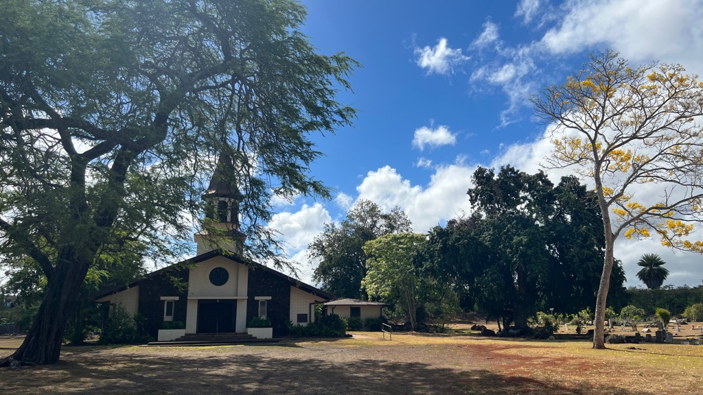 What is better to do on one’s first day in Hawaii other than surfing? We’d booked lessons with a shop in Haleiwa, though I was first with some others as the group limit was four. We arrived early so wandered around the town a bit. It was very quiet before 10am and we enjoyed the cool vibe, the old church, and putting flowers in hair!
