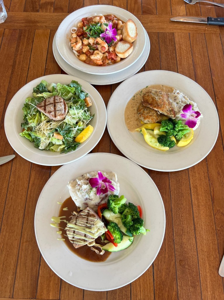 We were happy to head back to the rental to clean up and rest a bit. We had researched the restaurants in Haleiwa for dinner and there were some great options, but they were all closed on Monday evening. Other great options were toward Honolulu, but we were heading that way later in the week. So we looked north, and found Lei Lei’s at the Turtle Bay Resort’s golf club. While the menu was not extensive, the food was great, especially the poke and tomato/mozzarella for appetizers and ahi steaks.