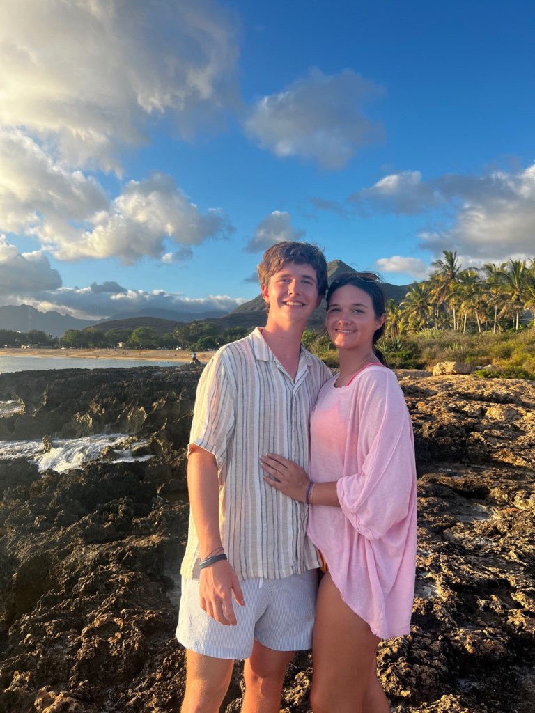 We followed Google Maps to parking by a small neighborhood and a beach used by locals. We immediately sensed a different vibe with quite a bit of trash and a guy passed out on the concrete. As we walked along the rocky shore to the caves, there were 10-15 memorials, that we later learned are for people who have died in the caves! The danger is primarily at high tide. We arrived to find a small group of guys jumping through a hole into the water below, timing it “just right” with the wave. Watching them did not make us feel comfortable. There was one hole with a small drop down to a dry pebbly beach. It was not an easy climb down, with questions about how you’d get out, and the crazy adult (i.e. me) led the way. Samuel, Jett, and Bailey followed. Kylie was the wise one, inspired by an earlier request from Tracy Townsend for a “proof of life” photo after her experience of a “day 2” on an Ireland-led “vacation.”