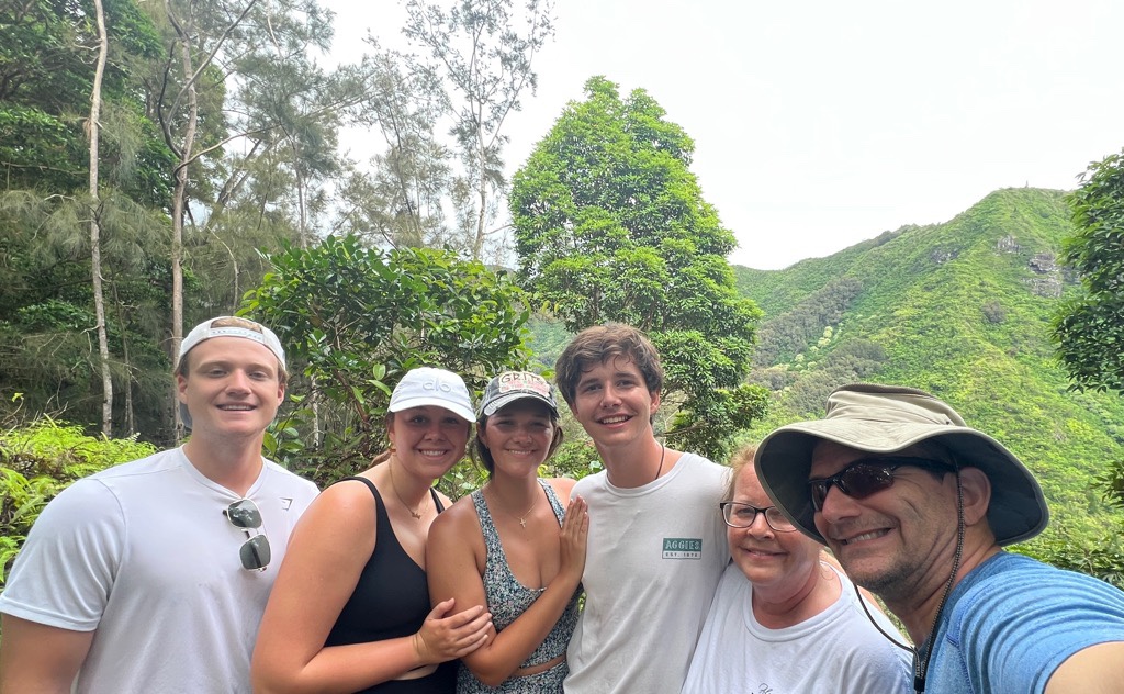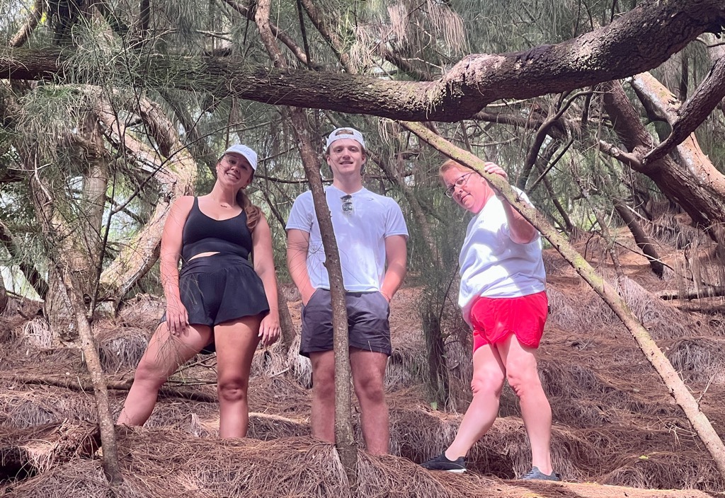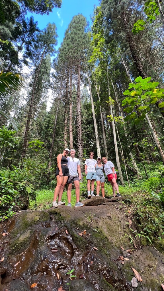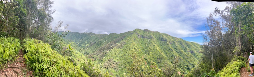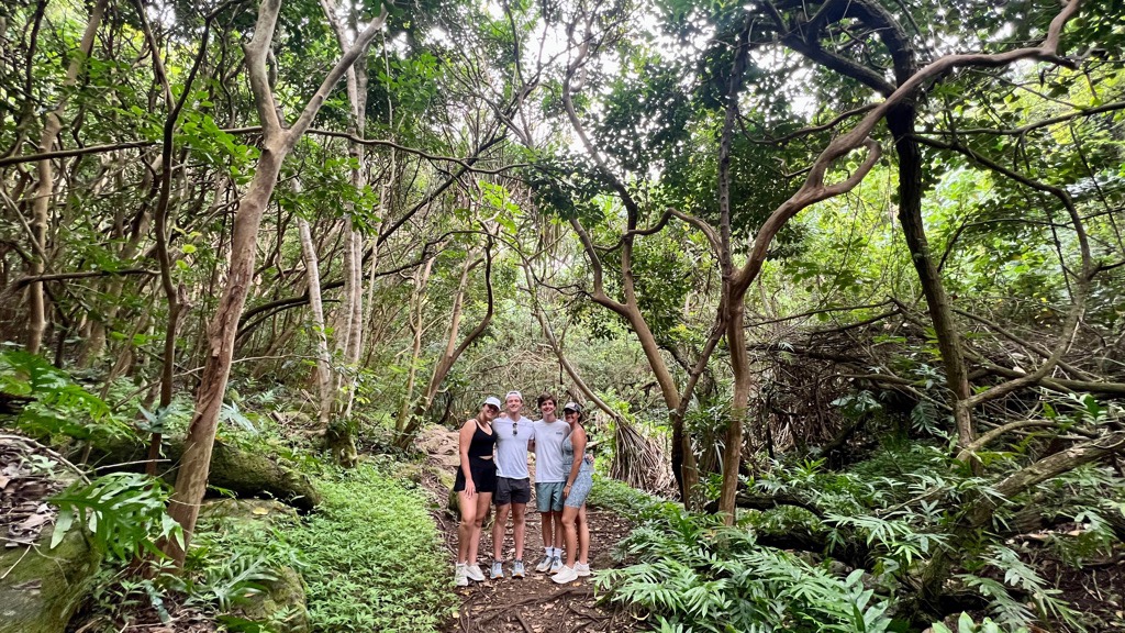 It was time for a hike! We headed out at 7:30 for a 30-minute drive to the Hau’ula loop around the northern tip of the island. We waited out a short rain shower and headed off up the mountain.