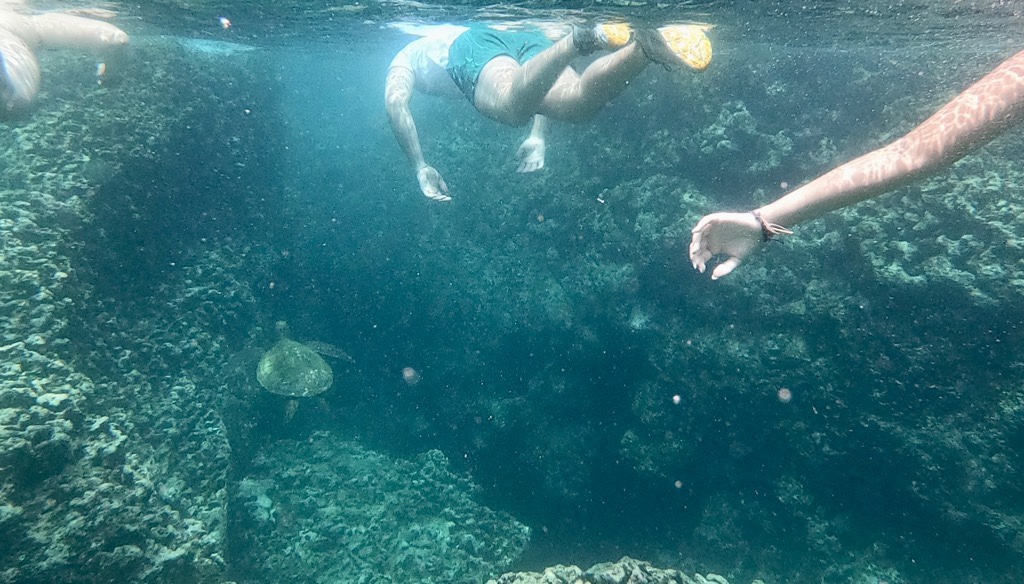 Next up – snorkeling in Shark’s Cove – named because of its shape, not its residents. We saw lots of brightly colored fish and …